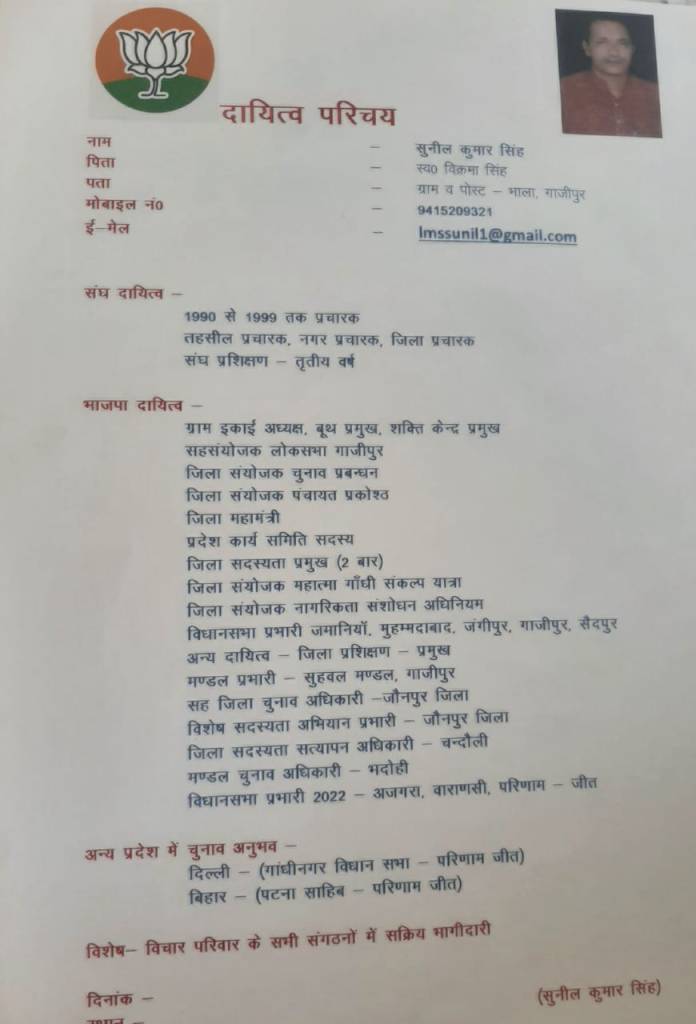 गाजीपुर। बीजेपी में लंबे समय से संगठन के फेरबदल की चर्चाएं चल रहीं थीं। जिसको लेकर कई पदाधिकारीयों को इंतजार था। आखिरकार शुक्रवार को यह फेरबदल कर दिया गया। भाजपा ने प्रदेश भर के कई जिलों में नए जिलाध्यक्षों की नियुक्ति कर दी है। करीब दो महीने से इस बारे में चर्चाएं चल रही थीं। लोकसभा चुनाव के मद्देनजर यह नियुक्तियां की गई हैं। जिले में जम्मू कश्मीर के उप राज्यपाल मनोज सिन्हा के करीबियों में गिने जाने वाले सुनील सिंह को गाजीपुर का जिलाध्यक्ष बनाया गया है। बता दें कि सुनील सिंह भाजपा के कई प्रमुख दायित्वों का बखूबी निर्वहन कर चुके हैं। इन्होंने उत्तर प्रदेश, बिहार और दिल्ली सहित कई जिलों में भाजपा के दिए हुए जिम्मेदारियां का निर्वहन किया हैं।