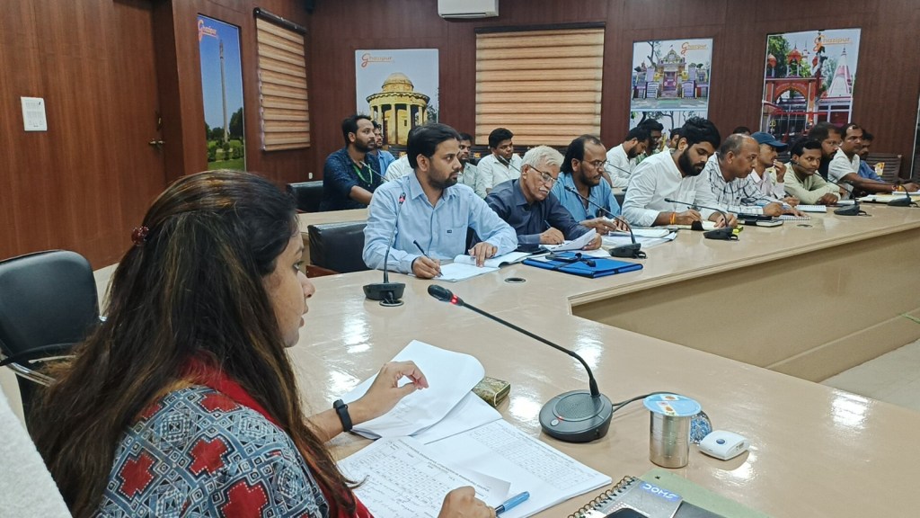 गाजीपुर। शुक्रवार की शाम जल जीवन मिशन कार्यक्रम के अन्तर्गत कराये जा रहे कार्यों की साप्ताहिक समीक्षा बैठक जिलाधिकारी आर्यका अखौरी की अध्यक्षता एवं मुख्य विकास अधिकारी की उपस्थिति में आहूत की गयी। जिसमें जिलाधिकारी द्वारा जनपद के अन्तर्गत निर्माणाधीन योजनाओं की गहन समीक्षा की तथा कार्यदायी संस्थाओं एवं जल निगम के अधिकारियों को निर्देश दिये गये कि सभी योजनाओं पर ट्यूबवेल, शिरोपरि जलाशय के कार्य अतिशीघ्र पूर्ण कराया जाना सुनिश्चित करेगें। टी०पी०आई को निर्देश दिये गये कि सम्पादित कराये जा रहे कार्यों की गुणवत्ता की जाँच निरन्तर करते रहेगें। बैठक में अधिशासी अभियन्ता मो० कासिम हाशमी, जल निगम (ग्रामीण) के अधिशासी अभियन्ता, सहायक अभियन्ता, जूनियर इंजीनियर कार्यदायी संस्था के प्रोजेक्ट मैनेजर, आई०एस०ए० तथा टी०पी०आई० के इंजीनियर उपस्थित थे।