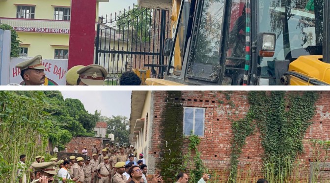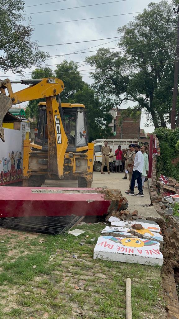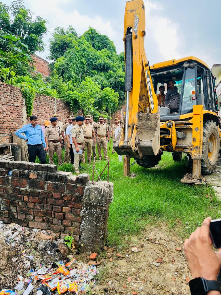 गाजीपुर। मुहम्मदाबाद थाना पुलिस द्वारा IS-191 के माफिया मुख्तार अंसारी के प्रमुख सहयोगी मिसबाहुद्दीन अंसारी पुत्र स्व0 सलाउद्दीन अंसारी निवासी कस्बा मुहम्मदाबाद द्वारा मुहल्ला यूसुफपुर गंज कस्बा थाना मुहम्मदाबाद से अवैध अतिक्रमित भूमि को कब्जा मुक्त कराया गया। अंतरप्रान्तीय गैंग 191 के माफिया मुख्तार अंसारी का प्रमुख सहयोगी तथा पूर्व में उसका प्रतिनिधि रह चुका मिसबाहुउद्दीन अंसारी पुत्र स्व0 सलाहुद्दीन अंसारी के द्वारा अनुसूचित जाति के व्यक्तियों के नाम से जीविकोपार्जन हेतु आवंटित पोखरा सिंघाड़ा बोने वाली भूमि को अवैध तरीके से अपने बाहुबल पर यूसुफपुर गंज स्थित करीब 5 मण्डा (10 बिस्वा) भूमि अपनी माँ रशीदा खातून के नाम रजिस्ट्री कराकर कब्जा कर लिया गया था। जिसके बाद कब्जा की गई भूमि को F.H.A (फरीदुलहक अंसारी) स्कूल की चहारदीवारी बनाकर व गेट लगाकर जलमग्न भूमि को घेर लिया गया था। जिसे रविवार को उप जिलाधिकारी मुहम्मदाबाद, क्षेत्राधिकारी मुहम्मदाबाद ने सर्किल के पुलिस बल के साथ कब्जा मुक्त कराया। कब्जा मुक्त करायी गयी भूमि 0.130 हेक्टेयर (1300 वर्ग मीटर) भूमि है । इसकी बाजारू कीमत करीब सवा करोड़ रुपये) है।
