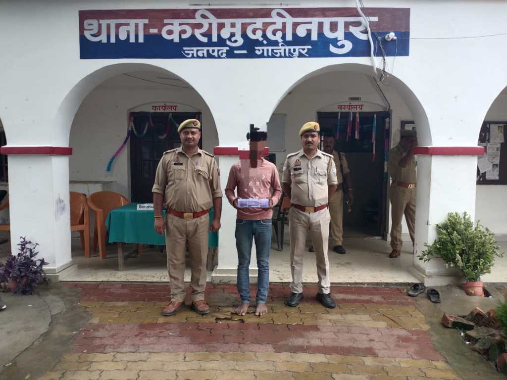 गाजीपुर। थाना करीमुद्दीनपुर पर वांछित चल रहे 1 अभियुक्त को एक देशी तमंचा .315 बोर व एक जिन्दा कारतूस .315 बोर के साथ थाना पुलिस ने गिरफ्तार किया। शुक्रवार को उप निरीक्षक बृजेश मिश्र ने गैंगेस्टर एक्ट में वांछित अभियुक्त रमेश चौहान पुत्र राजकिशोर चौहान निवासी ग्राम सत्यनगर चौथीबार थाना बरेसर 2 वर्ष को मुखबीर की सूचना पर गाँधीनगर स्कूल के बगल से 1 देशी तमंचा .315 बोर व 1 जिन्दा कारतूस .315 बोर के साथ गिरफ्तार किया। थाना करीमुद्दीनपुर में गैंगेस्टर एक्ट में वांछित था। गिरफ्तार अभियुक्त पर करीमुद्दीनपुर थाना में कई मामलों में मुकदमा दर्ज है। गिरफ्तार करने वाले पुलिस टीम में बृजेश मिश्रा के साथ हेड कांस्टेबल कौशल यादव और कांस्टेबल सूरज वर्मा शामिल थे।