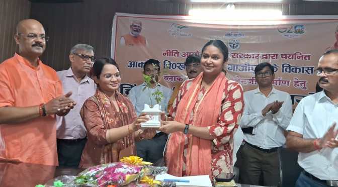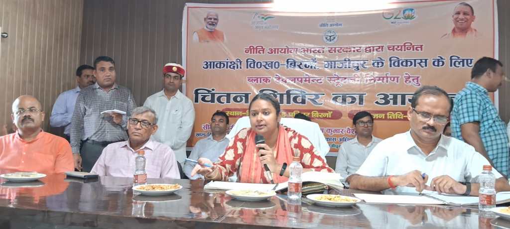 गाजीपुर। नीति आयोग भारत सरकार द्वारा चयनित आकांक्षी विकास .खण्ड विरनों के विकास के लिए ब्लाक डेवलेपमेंट स्टेटजी निर्माण हेतु चिंतन शिविर का आयोजन जिलाधिकारी आर्यका अखौरी की अध्यक्षता एवं जनप्रतिनिधियों की उपस्थित में सोमवार को सम्पन्न हुआ। जिलाधिकारी ने बताया कि भारत सरकार की नीति आयोग द्वारा विकासखंड विरनो का चयन आकांक्षात्मक विकासखंड के अंतर्गत किया गया है। इस हेतु नीति आयोग के निर्देश पर विकास खंड विरनो की विकास रणनीति बनाने हेतु विकासखंड स्तर पर आज चिंतन शिविर का आयोजन किया गया। चिंतन शिविर में स्वास्थ्य, पोषण, शिक्षा, कृषि, पशुपालन, सामाजिक विकास, आधारभूत ढांचा के विकास हेतु रणनीति पर चर्चा की गई एवं उपस्थित जनप्रतिनिधियों से सुझाव भी लिये गये, जिससे यहां विभागीय योजनाओ के संचालन एवं क्रियान्वयन पर सही रणनीति बन सके। सम्बन्धित अधिकारियो ने अपने-अपने विभागीय पैरामीटर्स से लोगो को विस्तारपूर्वक अवगत कराया जिन पर कार्य किया जा रहा है।