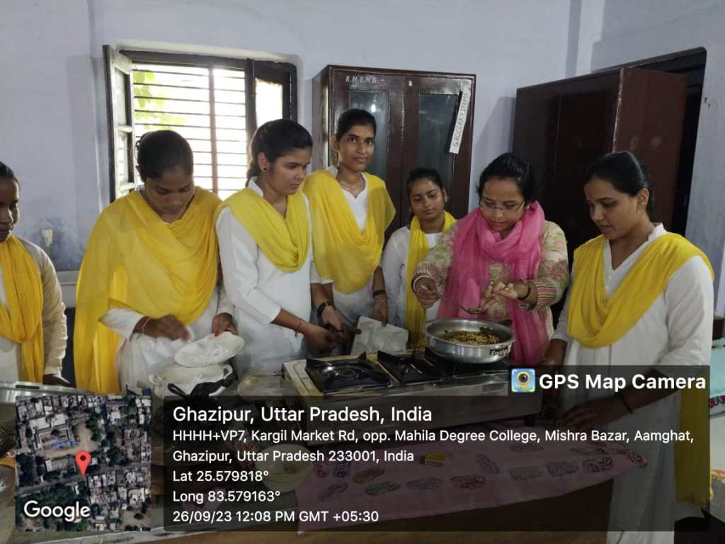 गाजीपुर। राजकीय महिला स्नातकोत्तर महाविद्यालय में गृह विज्ञान विभाग के द्वारा राष्ट्रीय पोषण माह के अंर्तगत “श्री अनाज” की रेसिपी गुरूवार को बनाई गई । जिसमे बाजरे का उपमा, बाजरे की दलिया और ज्वार के लड्डू छात्राओं द्वारा बनाए गए। गृह विज्ञान विभागाध्यक्ष नेहा कुमारी के निर्देशन में यह कार्यक्रम संपन्न हुआ। उन्होंने कहा कि इस कार्यक्रम का उद्देश्य छात्राओं को मोटे अनाजों के पोषक मूल्य की जानकारी देना एवं दैनिक भोजन में श्री अन्न को पुनः शामिल करने हेतु प्रोत्साहित करना हैं । इन अनाजों में मिनरल, विटामिन, एंजाइम और इन सॉल्युबल फाइबर के साथ-साथ मैक्रो और माइक्रो जैसे पोषक तत्व भी भारी मात्रा में मौजूद होते हैं। इसके अलावा मोटे अनाजों में बीटा-कैरोटीन, नाइयासिन, विटामिन-बी6, फोलिक एसिड, पोटेशियम, मैग्नीशियम, जस्ता जैसे खनिज लवण भी पाए जाते हैं। इस कार्यक्रम में एम ए द्वितीय वर्ष की छ्त्राएं जिनमें रचना मौर्य , नेहा यादव , श्रेया तिवारी , हिफ्जा , प्रीति विश्वकर्मा , प्रीति गुप्ता , शिखा कुशवाहा , खुशी पांडे , सपना , सुमन , सृष्टि , प्रतिमा पासवान ने प्रमुख रूप से प्रतिभाग किया ।