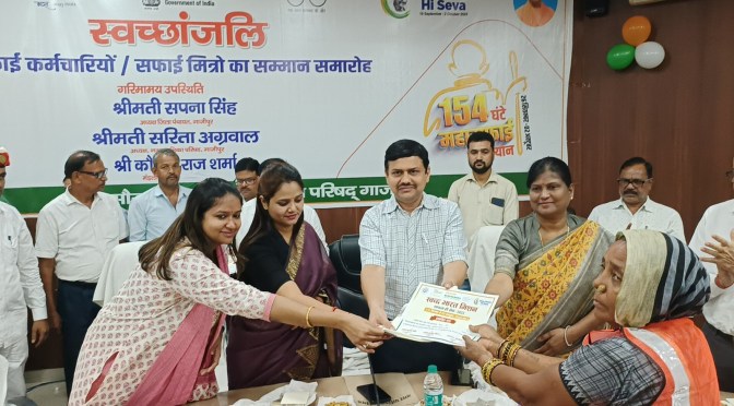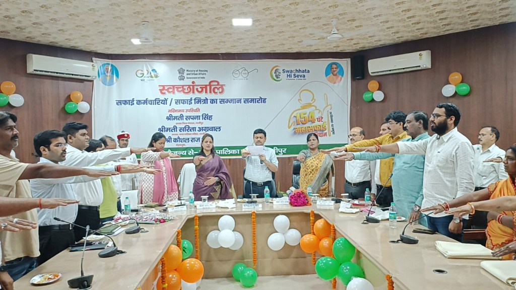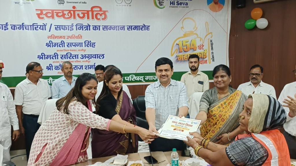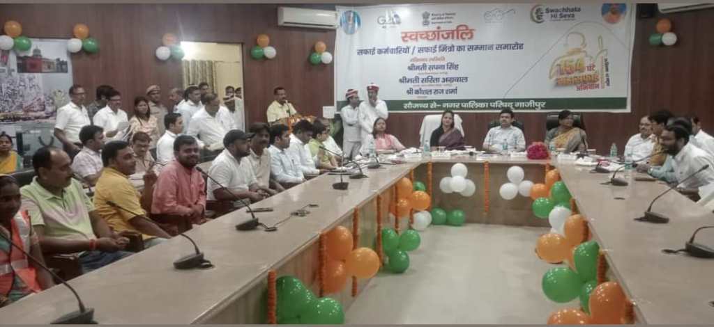 गाजीपुर। रायफल क्लब सभागार कक्ष में कौशल राज शर्मा मण्डलायुक्त, वाराणसी मण्डल, वाराणसी की अध्यक्षता एवं जिला पंचायत अध्यक्ष सपना सिंह, नगर पालिका अध्यक्ष सरिता अग्रवाल जिलाधिकारी आर्यका अखौरी, मुख्य विकास अधिकारी संतोष कुमार वैश्य सहित अन्य अधिकारियों, कर्मचारियों, सफाई कर्मचारियों, नागरिको की उपस्थिति मे महात्मा गांधी एंव पूर्व प्रधानमंत्री लाल बहादुर शास्त्री की जयंती भव्य पूर्वक मनायी गयी। इस अवसर पर मण्डलायुक्त ने जनपद मे अच्छे कार्य करने वाले सफाई कर्मचारियों/सफाई मित्रो को अंगवत्रम एवं प्रशस्ति पत्र देकर सम्मानित भी किया एवं उपस्थित लोगो को स्वच्छता की शपथ भी दिलायी। मण्डलायुक्त वाराणसी मण्डल कौशल राज शर्मा ने 2 अक्टूबर गांधी जयंत्री के अवसर पर काशी से लहुरी काशी में उपस्थित होकर स्वच्छता ही सेवा कार्यक्रम मे प्रतिभाग किया। रायफल क्लब सभागार मे मुख्य अतिथि एवं विशिष्ट अतिथियो ने इन दो महापुरूषों की चित्रो पर माल्यार्पण, पुष्प अर्पित एवं दीप प्रज्ज्वलित करके इनके जीवन चरित्र के विषय मे विस्तारपूर्वक जानकारी दी। इस दौरान कार्यक्रम मे नेहरू युवा केन्द्र के कलाकारो द्वारा स्वच्छता पर नुक्क्ड़ नाटक की प्रस्तुति दी गयी जो सराहनीय रहा। वही गायक राकेश कुमार ने गीत के माध्यम से लोगो को स्वच्छता के प्रति जागरूक कियां। मण्डलायुक्त ने कहा कि जहां गांधी जी ने हमें सत्य और अहिंसा का पाठ पढ़ाया। वहीं लाल बहादुर शास्त्री जी के जीवन से सौम्यता एवं शालीनता के पथ पर चलते रहने की राह मिली। मण्डलायुक्त ने अपना सम्बोधन व्यक्त करते हुए कहा कि स्वच्छता एक निरंन्तर प्रक्रिया है जो हम सभी के दैनिक दिनचर्या में शामिल है, हमें अपने घर, परिसर, पास-पड़ोस, कार्यालय, सड़कों को स्वच्छ एवं हरा-भरा बनाये रखने में निष्ठा एवं तत्परता के साथ कार्य करना चाहिए। यही हमसब की महात्मा गॉधी के विचारों एवं प्रधानमंत्री की सोच के प्रति सच्चा आदर एवं सम्मान है। उन्होने नगर वासियों से सप्ताह में केवल 2 घण्टे का समय निकाल कर स्वच्छता अभियान को सफल बनाने के लिए अपना अहम योगदान देने ,अपने-अपने घरों के साथ ही पास-पड़ोस में साफ सफाई बरकरार रखने एवं स्वच्छता के प्रति एक दूसरे को जागरूक करने की अपील की।