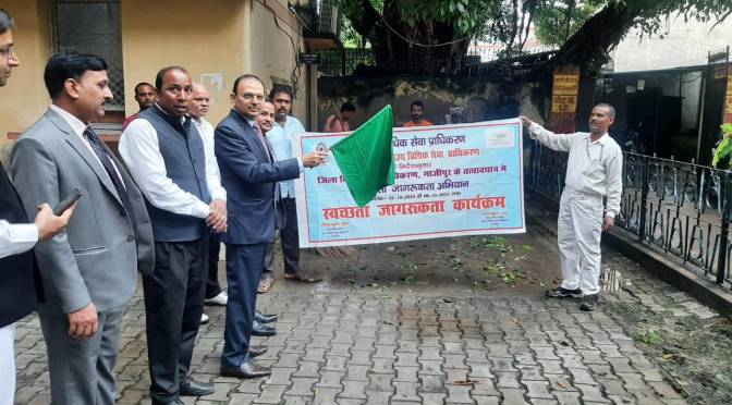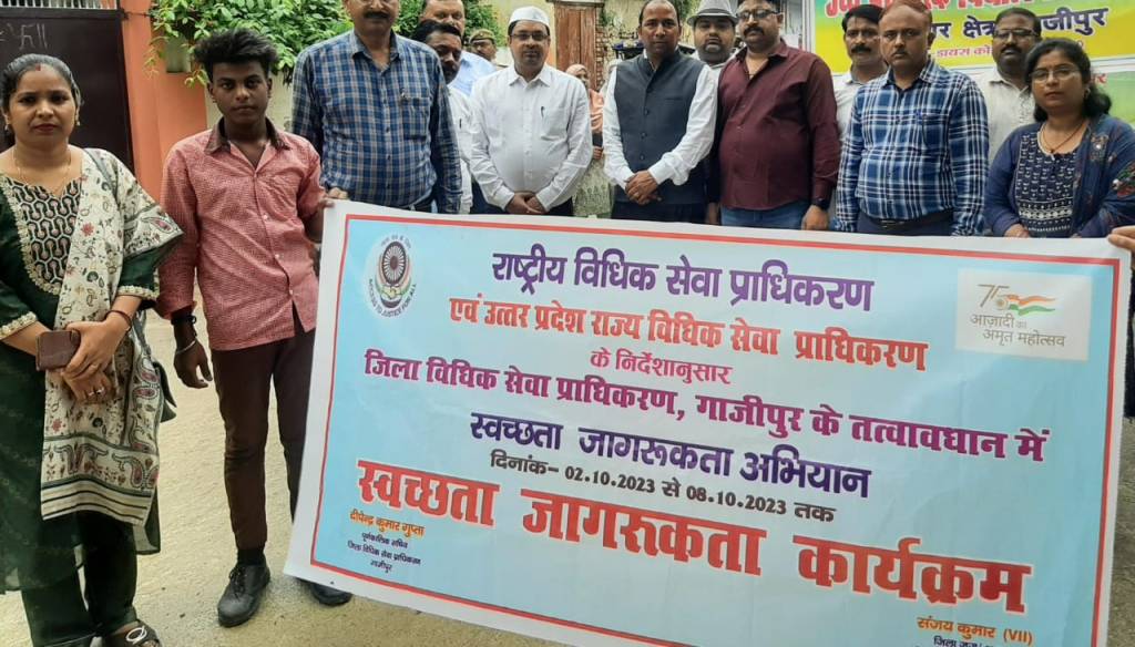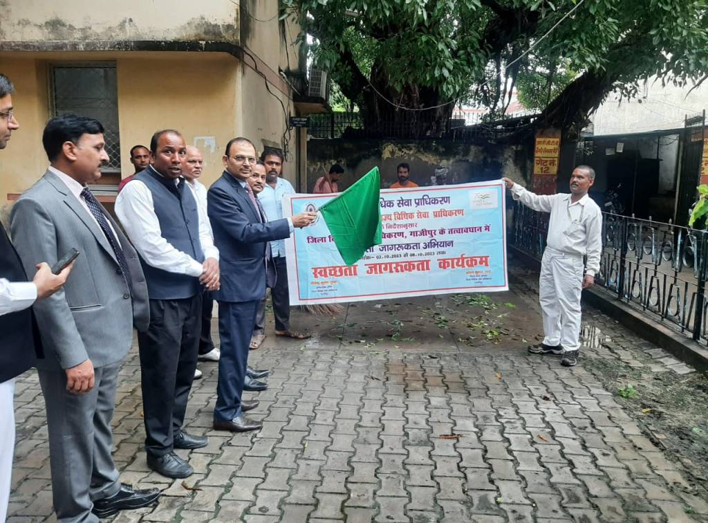 गाजीपुर। सोमवार को महात्मा गांधी एवं लाल बहादुर शास्त्री की जयंती के उपलक्ष्य में जनपद न्यायायल के दसकक्षीय सभागार में प्रातः 8 बजे प्रभारी जनपद न्यायाधीश/अध्यक्ष जिला विधिक सेवा प्राधिकरण चन्द्र प्रकाश तिवारी द्वारा महात्मा गांधी एवं लाल बहादुर शास्त्री की प्रतिमा पर माल्यार्पण एवं दीप प्रज्जवलित कर संगोष्ठी का आयोजन किया गया। इस उपलक्ष में संजय कुमार यादव-प्रथम, अपर जनपद न्यायाधीश, राकेश कुमार विशेष न्यायाधीश, पाक्सो, स्वप्न आनन्द सिविल जज वरिष्ठ संवर्ग एवं अन्य न्यायिक अधिकारी, अधिवक्तागण, तृतीय, चतुर्थ श्रेणी कर्मचारी एवं सुरक्षाकर्मी उपस्थित रहे। इस अवसर पर प्रभारी जनपद न्यायाधीश/अध्यक्ष जिला विधिक सेवा प्राधिकरण द्वारा हरी झंडी दिखाकर 2 से 8 अक्टूबर तक चलने वाले स्वच्छता अभियान का शुभारम्भ किया गया।