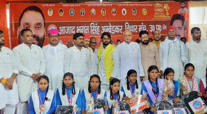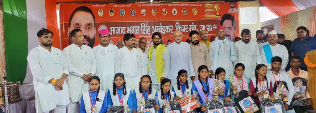 गाज़ीपुर। सदर ब्लाक के ग्राम सभा बयपुर स्थित गंगादास बालिका विद्यालय में प्रतिभा सम्मान समारोह का आयोजन मंगलवार को किया गया। समारोह आजाद भगत सिंह अंबेडकर विचार मंच के तत्वाधान में आयोजित किया गया था। इस कार्यक्रम के मुख्य अतिथि पूर्व राज्य मंत्री रमेश प्रजापति रहे। इस दौरान अंबेडकर विचार मंच के प्रदेश अध्यक्ष अक्षत प्रजापति ने जिले के एक हजार मेधावी बच्चों की प्रतिभा सम्मान समारोह का आयोजन किया।