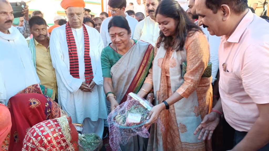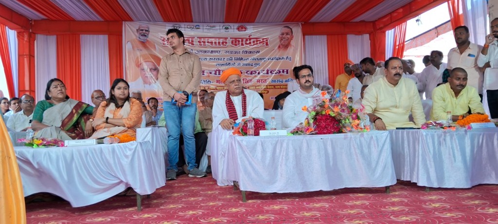 उन्होने मोटे अनाज के पैदावार पर जोर देते हुए कहा कि प्रत्येक ब्लाक मे मेरे द्वारा निःशुल्क मोटे अनाज की बीज उपलब्धता सुनिश्चित करायी गयी जिससे आज मोटे अनाज की अच्छी पैदावार हो रही है जिससे आने वाले दिनो मोटे अनाज का निर्यात दूसरे देशो में होगा। उन्होने ग्रामवासियो को स्वच्छता के अभियान से जुड़ने की बात कहते हुए कहा कि स्वच्छता ही स्वस्थ समाज की रचना करता है, और स्वस्थ समाज ही सबल समाज की रचना करता है। स्वच्छता, स्वास्थ्य, सबलता यही देश को समृद्धि के मुकाम तक पहुचाता है। उन्होने कहा कि आत्मनिर्भर भारत बनाने के लिए आप लोगो को भी उसमे सम्मिलित होना अति आवश्यक है क्योकि शासन, प्रशासन और समाज मिलकर ही लोकतत्र के रास्ते को मुकाम तक पहुचाता है। उन्होेने पशु पालन विभाग के अधिकारी को जनपद के दूध उत्पादन बढाने हेतु प्रत्येक किसान को कम से कम दो गाय सरकार की योजन से उपलब्ध कराया जाये। उन्होने कहा कि आज सरकार प्राकृतिक खेती को बढावा देने के लिए किसानो को गोबर का भी पैसा दे रही है तथा गंगा किनारे 5 किमी के दायरे मे प्राकृतिक खेती की योजना बनायी है । उन्होने जिलाधिकारी से गंगा किनारे जगह-जगह पर एक खेल का मैदान एवं एक व्यायामशाला बनवाने को कहा जिससे एक नया समाज का निर्माण हो। क्योकि स्वस्थ एव स्वच्छता से ही एक सबल राष्ट्र का निर्माण होता है। उन्होने कहा कि पर्यटन के क्षेत्र मे बनने वाले केन्द्र अध्यात्मिक एवं धार्मिक हो। वहॉ धार्मिक व अध्यात्मिक चर्चा अवश्य होनी चाहिए। उन्होने गो-पालन , प्राकृतिक खेती , पशु पालन, जल संरक्षण हेतु ग्रामवासियो से अनुरोध किया। कहा स्वस्थ समाज ही आत्म निर्भर भारत का निर्माण करेगा और 2047 मे विकसित भारत दिखेगा।