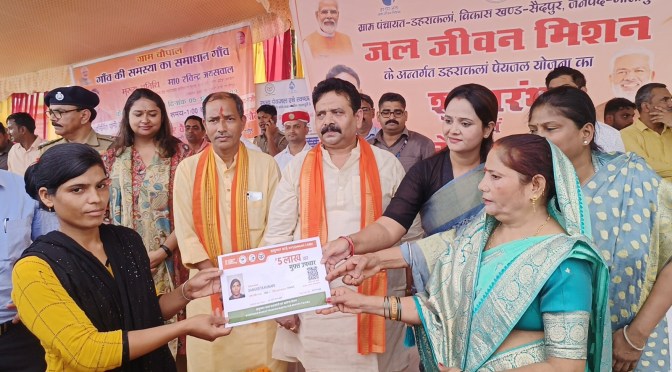 गाजीपुर। प्रभारी मंत्री रवींद्र जायसवाल की अध्यक्षता में ग्राम पंचायत डहराकलां विकास खण्ड सैदपुर मे गुरुवार को जन चौपाल का आयोजन किया गया । इस दौरान प्रभारी मंत्री ने करोड़ो रूपये की लागत से शासन की निर्मित विभिन्न योजनाओ का शुभारम्भ एवं लोकार्पण किया। चौपाल के माध्यम से संवाद स्थापित ग्रामवासियों को समस्याओ को सुना। जन चौपाल कार्यक्रम मे जिलाधिकारी आर्यका अखौरी एवं पुलिस अधीक्षक ओमवीर सिंह ने उपस्थित मुख्य अतिथि रवींद्र जायसवाल एवं अन्य विशिष्ट अतिथियो का पुष्पगुच्छ एवं स्मृति चिन्ह देकर स्वागत किया। प्राथमिक विद्यालय की छात्राओ द्वारा स्वागतगीत एवं नाटक के माध्यम से सबका मन मोह लिया।मंत्री ने प्रशन्नता जाहिर करते हुए बच्चियो को पुष्पगुच्छ देकर सम्मानित किया। जन चौपाल कार्यक्रम में राज्यमंत्री (स्व0 प्रभार) स्टाम्प एवं न्यायालय पंजीयन शुल्क उ0 प्र0 प्रदेश शासन रवीन्द्र जायसवाल ने दिन गुरूवार को ग्राम पंचायत डहराकलां पहुचकर लगभग 04 करोड़ 89 लाख से निर्मित परियोजनाओ का शुभारम्भ/लोकापर्ण किया। ग्रामीणो से चौपाल के माध्यम से संवाद स्थापित कर उन्हे प्राप्त हो रही शासन की योजना की जानकारी ली।प्रभारी मंत्री ने अधिकारियों को शासन की समस्त लाभपरक योजनाओ को धरातल पर उताकर पात्रो को लाभ देने का निर्देश दिया। उन्होने बारी-बारी ग्रामीणो से उनकी समस्याओ को सुना।उन्होंने संबंधित अधिकारी को उनके समस्याओ के निस्तारण का निर्देश दिया। उन्होने कहा कि जो पात्र व्यक्ति आयुष्मान कार्ड, विधवा पेंशन, दिव्यांग पेंशन, राशन कार्ड, वृद्धा पेशन, मुख्यमंत्री/प्रधानमंत्री आवास, उज्ज्वला योजना एवं शासन की अन्य योजना से वंचित है उसका आवेदन कराते हुए उसे लाभ दिया जाए।