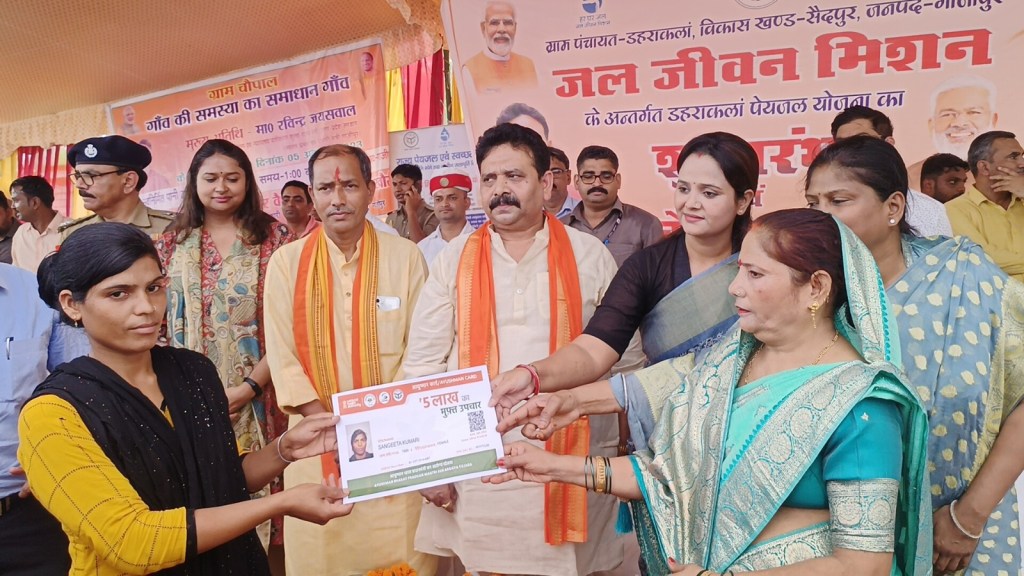 जिसमें हेल्थ एण्ड वेलनेस सेन्टर विक्रमपुर, राजकीय आयुर्वेदिक चिकित्सालय भवन निर्माण भुंवरपुर एवं फुलवरियां खुर्द, राजकीय आयुर्वेदिक डिस्पेंसरी/आयुष हेल्थ वेलनेस सेन्टर विक्रमपुर, ग्राम पंचायत मंझारिया मे सकल नारायण के घर से सूर्य नाथ यादव के घर तक ढक्कनदार नाली निर्माण कार्य, ग्राम पं0 शिव सिंह चक मे देवसरन के घर से रामकरन चौहान के घर तक इण्टर लांकिग कार्य, विकास खण्ड देवकली के अन्तर्गत साधन सहकारी समिति देवचन्दपुर का मरम्मत व नवीनीकरण कार्य, ग्रामपंचायत एकावसपट्टी में लालजी बिन्द के घर से पिन्टू यादव के खेत तक इण्टर लॉकिंग कार्य, पंचायत भवन ग्राम पं0 रमरेपुर एवं पंचायत भवन ग्राम पं0 औड़िहार मे कराये गए कार्याे का लोकार्पण किया। कार्यक्रम के अन्त मे मंत्री ने पात्रो व्यक्तियो मे आयुष्मान कार्ड एवं किसानो मे तोरिया बीज के मिनी किट का वितरण का लाभान्वित उन्हे किया। इस दौरान जिला पंचायत अध्यक्ष सपना सिंह, नगर पालिका अध्यक्ष सरिता अग्रवाल, नगर पंचायत अध्यक्ष सैदपुर सुशीला सोनकर, नगर पालिका अध्यक्षत जमानिया, दिलदारनगर पंचायत अध्यक्ष अविनाश जयसवाल (नेपाली) जिलाध्यक्ष भाजपा सुनील सिंह, मुख्य विकास अधिकारी संतोष कुमार वैश्य, उप जिलाधिकारी सैदपुर, जिला विकास अधिकारी ,परिेयोजना निदेशक ,समस्त जिलास्तरीय अधिकारीगण, पार्टीपदाधिकारी, भारी संख्या मे ग्रामवासी उपस्थित थे।