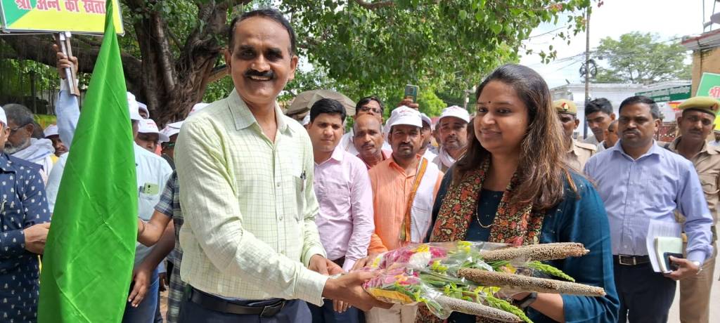 गाजीपुर। शुक्रवार को कृषि विभाग द्वारा जनपद स्तरीय मिलेट्स महोत्सव एवं रोड-शो का शुभारंभ स्थान राईफल क्लब से मुख्य अतिथि जिलाधिकारी आर्यका अखौरी द्वारा झण्डा दिखाकर किया गया। जिलाधिकारी ने श्री अन्न के उत्पादन पर जोर दिया तथा बताया कि श्री अन्न मे आवश्यक खनिज व पोषक तत्व मौजूद होते है, जो कुपोषण को दूर करता है, इसकी खेती बिना रासायनिक उर्वरक के भी सुगमता पूर्वक की जाती है। जनपद में 16000 हे0 मे बाजरा का उत्पादन किया जाता है। जिलाधिकारी द्वारा बताया गया कि पूरे विश्व में मिलेट्स ईयर मनाया जा रहा है। मिलेट्स का मुख्य उत्पादक देश भारत है,। प्रधानमंत्री का सपना है कि इस महत्वपूर्ण अनाज का प्रचार-प्रसार पूरे विश्व में किया जाए। इस कार्यक्रम का मुख्य उद्देश्य श्री अन्न का उत्पादन बढाना तथा भोज्य पदार्थों में शामिल किया जाना है। मोटे अनाज सेहत के लिए बेहद उपयोगी है, फाईबर व खनिज प्रचुर मात्रा में पाये जाते है, गत वर्ष जनपद मे बाजरा खरीद हेतु दो क्रय केन्द्र करण्डा एवं मुहम्मदाबाद में खोला गया है। जहाँ पर किसान 2500 रू0 प्रति कुंटल पर बिक्री की गयी।