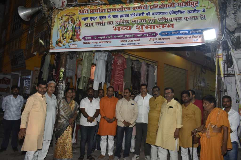 गाजीपुर।अति प्राचीन रामलीला कमेटी हरिशंकरी के तत्वाधान में हर वर्ष की भांति इस वर्ष भी 10 अक्टूबर मंगलवार को शाम 7 बजे से धनुष मुकुट पूजन के साथ रामलीला का आयोजन शुरूआत किया गया। धनुष मुकुट का पूजन मुख्य अतिथि सदर एसडीएम प्रखर उत्तम व क्षेत्राधिकारी गौरव कुमार द्वारा धनुष मुकुट का विधि विधान के साथ पूजन आरती किया गया। इसके बाद नगर पालिका अध्यक्ष सरिता अग्रवाल, पूर्व अध्यक्ष विनोद अग्रवाल, भाजपा के संतोष कुमार तथा कमेटी के मंत्री ओमप्रकाश तिवारी, संयुक्त मंत्री लक्ष्मी नारायण उपमंत्री लवकुमार त्रिवेदी प्रबन्धक, वीरेश राम वर्मा, उपप्रबन्धक मयंक तिवारी, कोषाध्यक्ष रोहित कुमार अग्रवाल, अशोक अग्रवाल ने पूजन आरती किया।