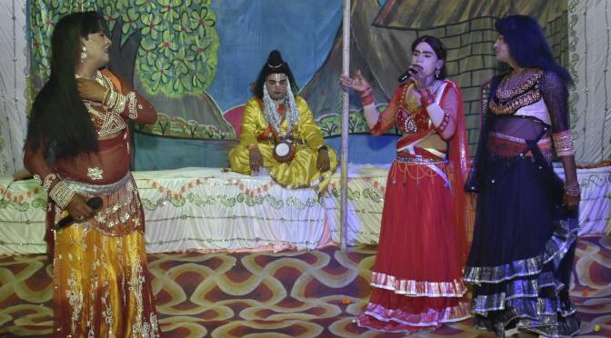 उधर, राजा दशरथ पुत्र के लिए अपने राजदरबार में बैठे थे कि उनके कुल गुरू महर्षि वशिष्ठ उनके राजदरबार में पहुँचते है राजा को दुःखी देखकर सारी बाते पूछते है दशरथ जी ने कहा कि गुरूदेव क्या मेरे बाद सूर्यवंश का दीप बुझ जायेगा, इतना सुनने के बाद महर्षि वशिष्ठ ने राजा दशरथ कोे आश्वासन देते है कि हे दशरथ आप एक पुत्र के लिए परेशान है और रो रहे है मैं तो देख रहा हूँ कि आपके घर में चार पुत्र अवतार लेंगे। आप महर्षि श्रृंगऋषि को बुलाकर पुत्र कामेष्टी यज्ञ कि तैयारी करे। इतना सुनने के बाद राजा दशरथ नंगे पांव श्रृंगीऋषि के पास जा करके अनुनय विनय करतेे है, उनके विनय को सुनकर श्रृंगऋषि ने कहा कि हे राजन आप अपने राजदरबार में जाकर यज्ञ की तैयारी कराइये थोड़ी दिनों बाद श्रृंगऋषि महाराज दशरथ के पास जाकर पुत्र कामेष्टी यज्ञ विधि विधान से करवाते है। यज्ञ से प्रसन्न हो करकेे अग्निदेव राजा दशरथ केे खीर भरा कटोर दे करकेे कहा कि हे राजन आप इस खीर कोे तीनों रानियों में वितरण कर दीजियेगा, अग्नि देव की आज्ञा पाकर महाराज दशरथ रानियों के कक्ष में पहुँचकर अग्निदेव द्वारा खीर को तीनों रानियों में बांट दिया। इसके बाद तीनों रानियों ने गर्भधारण कर लिया। खीर के प्रभाव से कौशल्या ने श्रीराम को जन्म दिया उसकेे बाद कैकेयी ने भरत को जन्म दिया और सुमित्रा ने लक्ष्मण और शत्रुघ्न को जन्म दिया। सारी अयोध्या ने खुशियोें का लहर दौड़ गया, उधर भगवान शंकर कैलाश पर्वत पर ध्यान मग्न थे। उन्होंने अंतरधान होकर देखा कि हमारे अराध्य देव श्रीराम ने महाराज दशरथ केे घर पर अवतार ले लिया है वे अपने आसन से उठ करके दोनो हाथ जोडकर स्तुति करते है कि भय प्रकट कृपाला दीन दयाला कौशल्या हितकारी हर्षित महतारी मुनिमन हारी अद्भुत रूप विचारी। उधर अयोध्यावासियों द्वारा सोहर बधइया आदि मांगलिक गीत गाती है। इस लीला को देखकर दर्शक उच्च स्वर में जय श्री राम व हर हर महादेव के नारों से गूंजाय मान कर दिया।