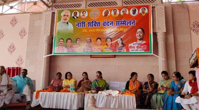 गाजीपुर। नारी शक्ति वंदन अधिनियम व्यापक दृष्टि वाला एक ऐसा कानून हैं,जिसकी शक्ति से प्रत्येक स्तर पर आधी आबादी को आगे बढ़ने के अवसर मिलेंगे।आज यह बात भारतीय जनता पार्टी की प्रदेश मंत्री मीना चौबे ने गाजीपुर सदर विधानसभा में भारतीय जनता पार्टी महिला मोर्चा द्वारा प्रधानमंत्री नरेंद्र मोदी को धन्यवाद ज्ञापित करने हेतु नगर के अवध पैराडाइज में आयोजित नारी शक्ति वन्दन सम्मेलन में महिलाओं को सम्बोधित करते हुए कही, उन्होंने कहा कि इस कानून के बनने से विधानसभा और लोकसभा में महिलाओं की भागीदारी बढ़ेगी। और भारतीय जनता पार्टी सरकार का यह सदैव पूरा-पूरा प्रयास है कि महिलाएं आत्मनिर्भर बन स्वावलंबी भारत के निर्माण में सहयोगी बने। उन्होंने कहा कि आने वाले दिनों में महिलाओं के मजबूत स्थिति को कोई नकार नहीं सकता।