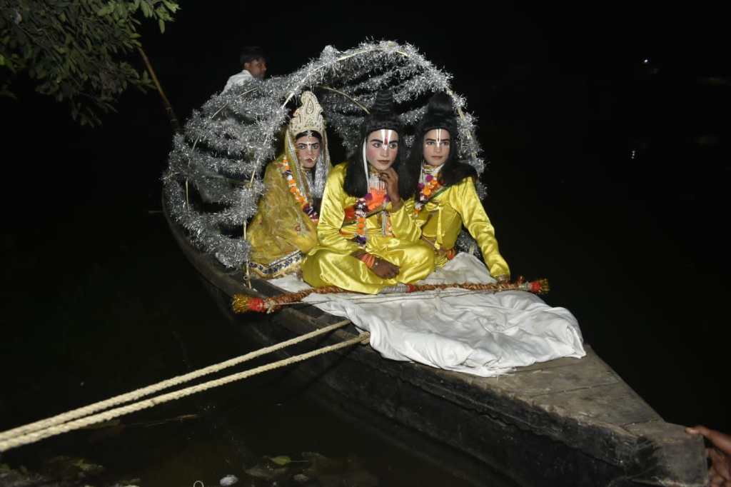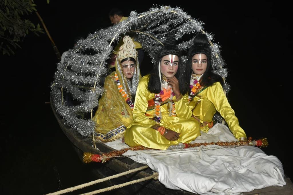 उधर श्रीराम केवट से गंगा पार जाने के लिए नाव की मांग करते है। केवट कहता है कि प्रभु आपके चरण में जादू है। मैं पहले आपका चरण धूलकर नाव पर बैठाउंगा केवट के भक्ति युक्त वाणी सुनकर भगवान श्रीराम प्रसन्न होकर आज्ञा देते है कि हे केवट जल्दी चरण धुलो और हमें गंगा पार उतार दो। श्रीराम की आज्ञा पाकर केवट भगवान श्रीराम के चरण धुलकर श्री सीताराम लक्ष्मण तथा निषाद राज को गंगा पार उतार देता है। श्रीराम नाव से उतरकर निषाद राज को वापस जाने को कहते है। इस अवसर पर अतिप्राचीन रामलीला कमेटी हरिशंकरी के द्वारा आतिशबाजी भी की गयी। प्रभु को गंगा पार केवट उतार देता है तब श्रीराम ने केवट को उतरायी में अंगूठी देते है, केवट कहता है कि हे नाथ ’अब कछुनाथ न चाहिअ मोरे, दीनदयाल अनुग्रह तोरे’ इस प्रकार कहके श्रीराम के चरणों में केवट दण्डवत कर देता है, भगवान श्रीराम उसको अपनेे गले से लगाकर उसको अविरल भक्ति का प्रदान करते है। इसके बाद श्रीराम लक्ष्मण सीता भारद्वाज मुनि के आश्रम पर पहुँचते है। इस अवसर पर कमेटी के मंत्री ओमप्रकाश तिवारी, उपमंत्री लवकुमार त्रिवेदी, प्रबन्धक विरेश राम वर्मा, उप प्रबन्धक मयंक तिवारी, कोषाध्यक्ष रोहित कुमार अग्रवाल, मनोज कुमार तिवारी, रामसिंह यादव आदि रहे।