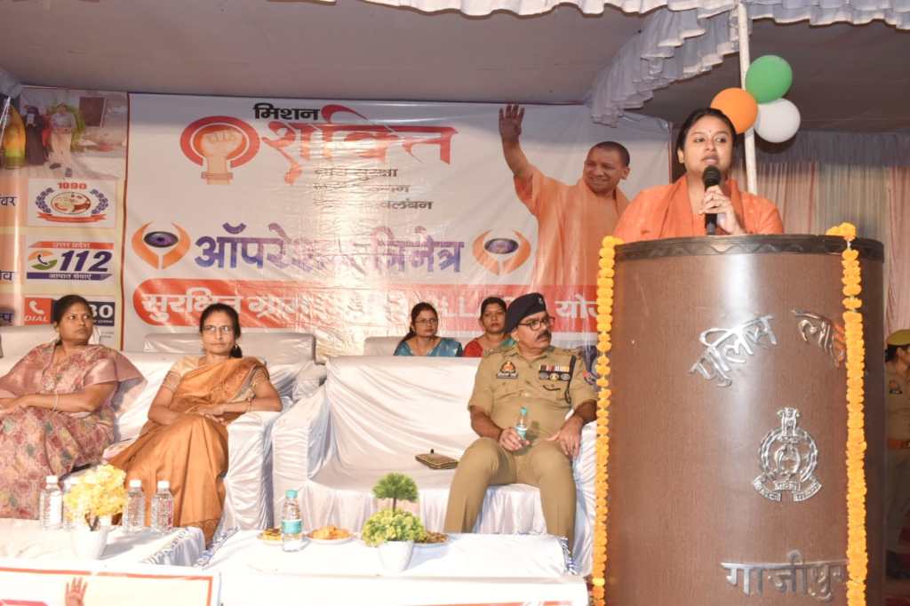 गाजीपुर। गुरूवार को सदर कोतवाली क्षेत्र के गांधी पार्क में जिलाधिकारी आर्यका अखौरी एवं पुलिस अधीक्षक ओमवीर सिंह द्वारा मिशन शक्ति के तहत चौपाल का आयोजन किया गया। चौपाल में पुलिस अधीक्षक द्वारा क्षेत्र के सभी ग्राम प्रधानों, गांव की महिलाओं तथा विभिन्न स्कूल की छात्राओं, बालिकाओं, एएनएम, आशा कार्यकर्त्री, बीसी सखी तथा थाना क्षेत्र के सभी ग्राम प्रहरियों को मिशन शक्ति नारी सुरक्षा, नारी सम्मान, नारी स्वावलंबन कार्यक्रम के बारे में जागरूक किया गया। जिलाधिकारी द्वारा बच्चियों एवं महिलाओं को उनके प्रति होने वाले किसी भी अपराध एवं संबंधित अपराधियों के बारे में तत्काल पुलिस एवं शक्ति मित्र महिला पुलिस कर्मियों को सूचना देने के लिए जागरूक किया गया।