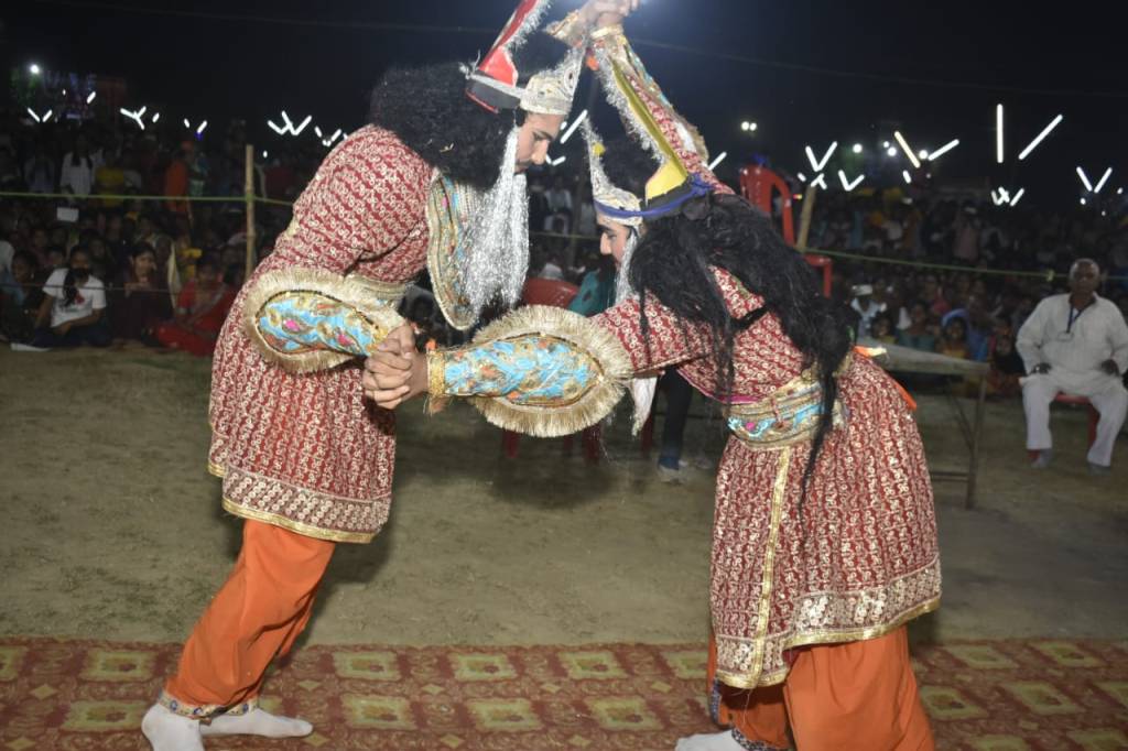 गाजीपुर। अति प्राचीन रामलीला कमेटी हरिशंकरी के तत्वाधान में वन्दे वाणी विनायकौ आदर्श श्रीराम लीला मण्डल के द्वारा स्थानीय लंका के मैदान में लीला के 13वें दिन रविवार सायं 7बजेे बाली सुग्रीव लड़ाई, श्री हनुमान सीता मिलन, लंका दहन लीला का मंचन किया गया। लीला के दौरान श्रीराम लक्ष्मण सीता की खोज करते हुए ऋष्यमूक पर्वत पर पहुँचकर हनुमान के द्वारा सुग्रीव से मित्रता होने के बाद सुग्रीव द्वारा बाली के सताये जाने के सम्बन्ध में श्रीराम से अवगत कराते है। श्रीराम ने सुग्रीव की बात को सुनकर बाली से युद्ध करने के लिए सुग्रीव को भेजते है। युद्ध केे दौरान बाली द्वारा सुग्रीव को मारकर मूर्छित कर दिया जाता है, होश आने पर सुग्रीव श्रीराम के पास जा करके कहता है कि प्रभु बाली ने मुझे मारकर अधमरा कर दिया। सुग्रीव के बात को सुनकर पुनः श्रीराम ने बताया कि मैं वाण इसलिए नही चलाया कि दोनो भाईयों का मुख एक समान है, यह कहके दूसरे बार पुनः सुग्रीव को माला पहनाकर युद्ध के लिए बाली केे पास श्रीराम भेजते है। अन्त में श्रीराम के कथनानुसार बाली से युद्ध करने के लिए सुग्रीव युद्ध भूमि में जाता है, इतने में श्रीराम ने देखा कि पुनः बाली द्वारा सुग्रीव को मार दिया जायेगा तब वे एक पेड के सहारे से अपने बाण से बाली को मार गिरातेे है। बाली मूर्छित होकर जमींन पर गिर पड़ता है, बाली को थोड़ी देर बाद होश आने पर श्रीराम को देख करके हाथ जोड़ करके कहता हैं कि मैं बैरी सुग्रीव पिआरा कारण कवन नाथ मोहिमारा, हे प्रभु मेरी दुश्मनी सुग्रीव से है मैंने आपका क्या बिगाड़ा कि आप दोनों भाई के बीच में आकर मुझे बाण सेे मारकर घायल कर दिया। बाली केे मुख से इस प्रकार की बात सुन करके श्रीराम कहते है कि हे बाली तुने अपने छोटे भाई सुग्रीव को सताते हुए उसको अपने राज्य से निष्कासित कर दिया, और उसकी पत्नी को तुमने अपने पास रख लिया है, इसलिए तुम्हे मारने में कोई दोष नही है। अगर आप चाहो तो मैं आपको जीवन दान दे सकता हूँ, श्रीराम के बात को सुन करकेे बाली ने कहा जनम-जनम मुनि जतन कराही अन्त राम मुख आवत नाही। उसने कहा कि प्रभु ऋषि मुनि आपका स्मरण करते है, फिर भी आपका दर्शन नही पाते है मैं तो भाग्यशाली हूँ कि आपके द्वारा मैं मारा जा रहा हूँ। इतना कहने के बाद बाली ने अपने पुत्र अंगद को श्रीराम के चरणों में डालते हुए कहा कि हे प्रभु इस बालक को अपने शरण में रखते हुए अपनी कृपा दृष्टि इस पर बनाये रखियेगा, इतना कहने के बाद बाली प्रभु श्रीराम के चरणो में अपने नश्वर शरीर को त्याग देता है। उधर बाली की पत्नी तारा अपने पति को वीरगति प्राप्त का समाचार सुनकर वह श्रीराम के पास आ करके श्रीराम के समक्ष विलाप करती है, उसके विलाप को देखकर श्रीराम प्रभु उसे समझाते है कि हे तारा क्