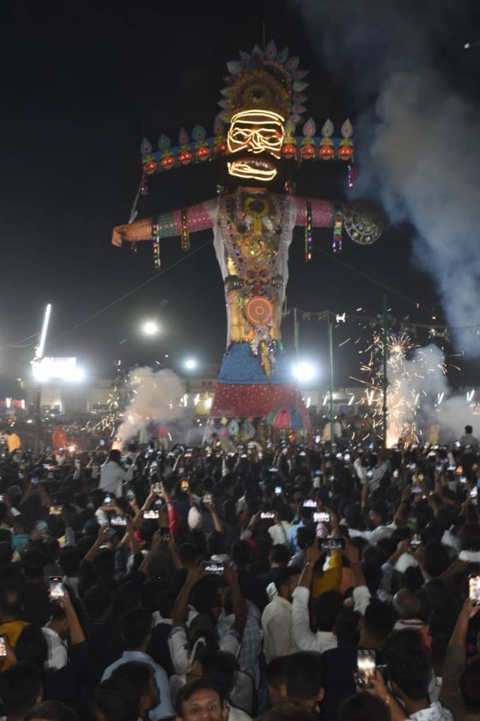 गाजीपुर। अति प्राचीन रामलीला कमेटी हरिशंकरी की ओर से दशहरा का पर्व परम्परागत रूप से मनाया गया। हर वर्ष की भांति इस वर्ष भी वन्दे वाणी विनायकौ रामलीला मण्डल द्वारा लंका मैदान में 24 अक्टूबर मंगलवार को शाम 7 बजे श्रीराम रावण युद्ध, और रावण वध का मंचन किया गया। दशहरे के मौके पर रामलीला मैदान लोगों की भीड़ से खचाखच भरा रहा। लीला का शुभारम्भ कमेटी के मंत्री ओमप्रकाश तिवारी, उपमंत्री लव कुमार त्रिवेदी द्वारा मुख्य अतिथि को माला पहनाकर जिलाधिकारी आर्यका अखौरी को बुके देकर तथा पुलिस अधीक्षक ओमवीर सिंह को माला पहनाकर शुरू किया गया। लीला में दर्शाया गया कि श्रीराम लक्ष्मण द्वारा खरदूषण, मेघनाद, कुंभकर्ण को मारे जाने पर अपने राजदबार से उठकर अपने राजमहल रावण जाता है और शस्त्र लेकर ज्यौ ही युद्ध भूमि पर जाने को तैयार होता है तो नाना माल्यवंत, स्त्री मन्दोदरी, भाई विभिषण ने समझाने की कोशिश की परन्तु रावण अहंकार में चूर किसी की बात नही सुनता है वही विभिषण को भरी राजबदार में रावण लात मारकर राज्य से निष्कासित कर देता है विभिषण रामदल में जाकर श्रीराम के शरण में चले जातेे है। उधर रावण आसुरी सेनाओं के साथा रथ पर सवार होकर युद्ध के लिए चल देता है और श्रीराम लक्ष्मण को युद्ध के लिए ललकाराता है। उसकी ललकार सुनकर वानरों के झुण्ड के साथ श्रीराम युद्ध में आ जातेे है और राम के लाख समझाने के बाद भी रावण नही मानता है।