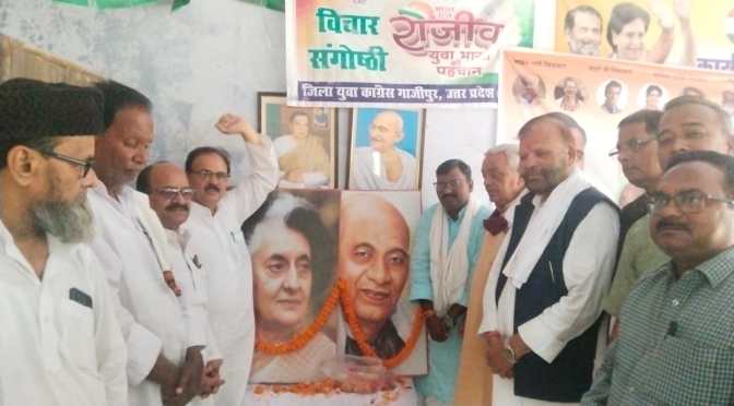 गाज़ीपुर। जिला कांग्रेस कमेटी के तत्वाधान में मंगलवार को भारत के पहले गृहमंत्री सरदार वल्लभभाई पटेल की 148वीं जयंती मनाई गई और आयरन लेडी के रूप में सुविख्यात पूर्व प्रधानमंत्री इंदिरा गांधी की 43वीं पुण्यतिथि पर उनके चित्र पर माल्यार्पण कर गोष्ठी मनाई। कार्यक्रम कांग्रेस जिला अध्यक्ष सुनील राम की अध्यक्षता में मनाया गया। इस अवसर पर नगर और जिले से उपस्थित नेताओं, पदाधिकारियों और सदस्य वक्ताओं ने पूर्व पीएम इंदिरा गांधी के साहसिक फैसले और उनके कार्यों और कांग्रेस पार्टी के मजबूत नेता गृहमंत्री सरदार वल्लभ भाई पटेल के द्वारा देश को एक करने के साहसिक कार्य को सराहा।