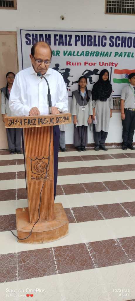 गाजीपुर। मंगलवार को शाह फैज़ विद्यालय के प्रांगण में लौह पुरुष सरदार वल्लभ भाई पटेल की जयंती एकता दिवस के रूप में मनाई गयी। सुबह प्रार्थना सभा में निदेशक डॉ नदीम अधमी ने सरदार पटेल के बारे में बताया की वो एक महान स्वतंत्रता सेनानी और भारत के पहले उपप्रधानमंत्री और गृहमंत्री थे। उन्होंने कहा कि स्वतंत्रता प्राप्ति के बाद देश की रियासतों का एकीकरण कर अखंड भारत के निर्माण में उनके योगदान को भुलाया नहीं जा सकता है। उन्होंने 562 छोटी-बड़ी रियासतों का भारतीय संघ में विलीनीकरण करके भारतीय एकता का निर्माण किया। उन्होंने यह भी कहा की हम सब एक हैं चाहे किसी भी धर्म के हों या किसी भी उम्र के हों।