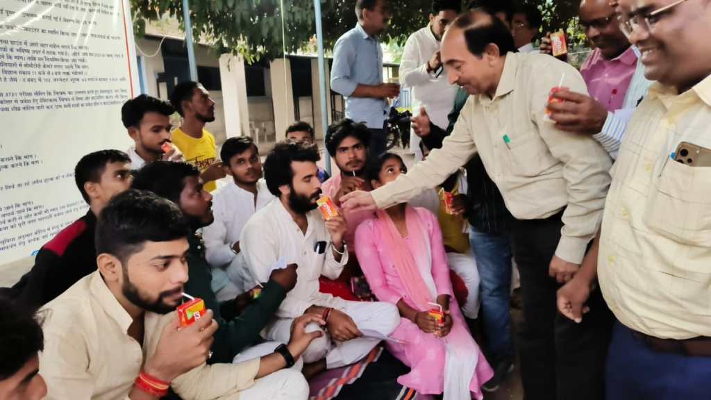 गाजीपुर। पीजी कॉलेज के प्रांगण में 32 सूत्रीय मांगों को लेकर चल रहे अनिश्चितकालीन धरना के बाइसवें दिन आमरण अनशन के चौथे दिन गुरूवार को प्राचार्य डॉ राघवेन्द्र पाण्डेय ने छात्रों को लिखित आश्वासन पत्र देकर सभी आमरण अनशन पर बैठे छात्रों को जूस पीलाकर अनशन स्थगित कराया। बता दें कि आमरण अनशन पर बैठे छात्रों की तबियत बिगड़ती देख कालेज प्रशासन आनन-फानन में सभी मांगों को शीघ्र पूर्ण करने के लिए दो सप्ताह का समय मांगकर धरना स्थगित कराया। इस दौरान पूर्व छात्रसंघ उपाध्यक्ष दीपक उपाध्याय ने कहा कि प्राचार्य डॉ राघवेन्द्र पाण्डेय द्वारा 32 सूत्रीय मांगों मे से तत्काल प्रभाव से आधे मांगों को पूर्ण किया गया। शेष आधे मांगों को दो सप्ताह में पूर्ण करने के आश्वासन पर धरना स्थगित किया गया है। सभी आमरण अनशन पर बैठे छात्रों ने कहा कि महाविद्यालय प्रशासन यदि दो सप्ताह में सभी मांगों को पूर्ण नही किया गया तो पुनः आमरण अनशन पर बैठने को छात्र बाध्य होंगे।