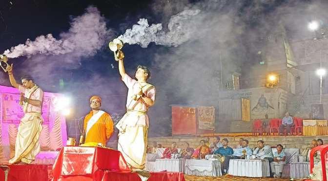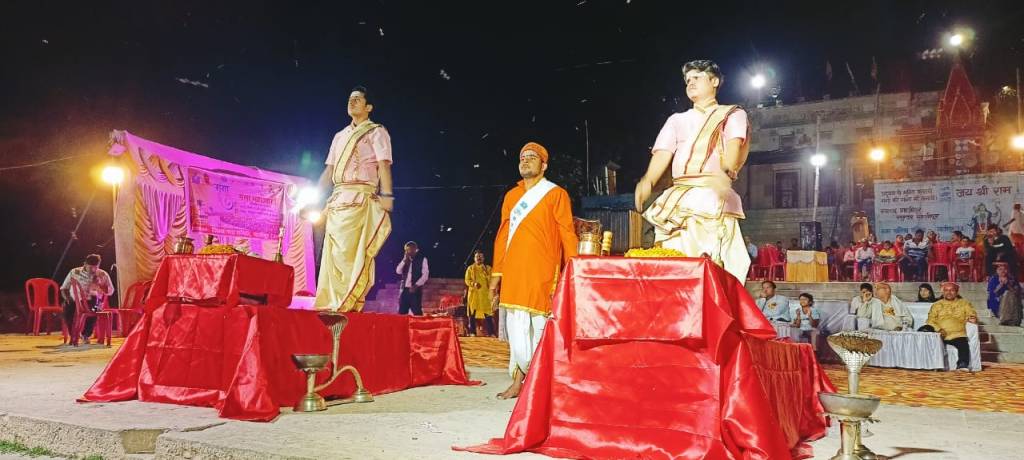 गाजीपुर। जिला गंगा समिति द्वारा गंगा उत्सव के अवसर पर भव्य गंगा आरती एवं सांस्कृतिक कार्यक्रम का आयोजन चीतनाथ घाट पर एवं पेंटिंग प्रतियोगिता का आयोजन राजकीय महिला स्नातकोत्तर महाविद्यालय में किया गया। काशी से आए बटुको ने भव्य गंगा आरती कर सबको मंत्रमुक्ध कर दिया। गायक राकेश शर्मा की टीम ने अपनी प्रस्तुति दी। प्रभागीय निदेशक प्रदीप ने कहा कि 04 नवंबर 2008 को गंगा को राष्ट्रीय नदी घोषित किया गया था तभी से प्रत्येक वर्ष 04 नवंबर को गंगा उत्सव के रुप में मनाया जाता है। अध्यक्ष नगर पालिका परिषद सरिता अग्रवाल ने कहा कि मां गंगा को स्वच्छ एवं निर्मल बनाने के लिए हम सभी को आगे आना होगा, तभी मां गंगा की धारा स्वच्छ एवं निर्मल होगी । कार्यक्रम में उपस्थित सभी लोगो को अध्यक्ष ने गंगा शपथ दिलाई। सभी का स्वागत प्रभागीय निदेशक प्रदीप ने किया एवं आभार जिला परियोजना अधिकारी (नमामि गंगे) बृजेश कुमार श्रीवास्तव ने प्रकट किया। इस अवसर पर, ई ओ नवीन श्रीवास्तव, डाव संतन कुमार, सभासद उषा जायसवाल, शंकर पांडेय, लक्ष्मी कांत मिश्रा, गुंजन सिंह, आदि लोग उपस्थित रहे।