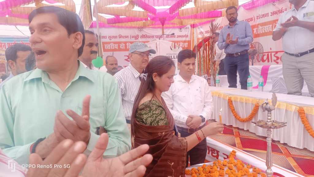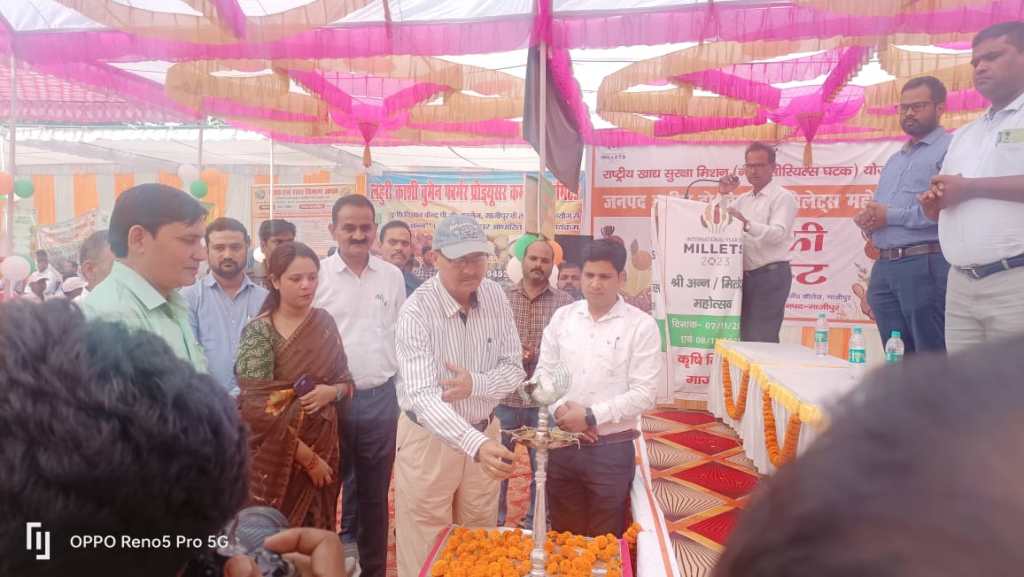 गाजीपुर। कृषि विभाग द्वारा जनपद स्तरीय दो दिवसीय मिलेट्स महोत्सव एवं मेला का आयोजन कृषि विज्ञान केन्द्र पी०जी० कालेज के प्रागण में मुख्य अतिथि जिला पंचायत अध्यक्ष सपना सिंह एवं संयुक्त कृषि निदेशक वाराणसी मण्डल वाराणसी द्वारा दीप प्रज्जवलित कर शुभारम्भ किया गया। इस दौरान सपना सिंह द्वारा लहुरी ओमेन काशी कृषक उत्पादक संगठन, महर्षि कण्व ऋषि, शिवाश कृषि उत्पादक संगठन के मोटे अनाज से बने रेसिपी की प्रशंसा करते हुये अन्य कृषि उत्पादक संगठन द्वारा इस तरह के भोज्य पदार्थों को बाजार में उपलब्ध कराने हेतु आग्रह किया। कहा कि श्री अन्न के प्रति पुरूष किसानो के साथ-साथ महिला किसानो को भी जागरूक किया जाय जिससे महिला किसान श्री अन्न से बनने वाले भोज्य पदार्थाे को निर्मित कर सके। महिला किसानो को कृषक उत्पादक संगठन मे सहभागिता सुनिश्चित कराने का आग्रह किया। संयुक्त कृषि निदेशक वाराणसी मण्डल वाराणसी द्वारा मोटे अनाज उगाये जाने के बारे में किसानो को विस्तृत रूप से जानकारी दी गयी एवं किसानो को जागरूक किया कि पराली कदापी न जलाये इसके जलने से मिट्टी की उर्वर क्षमता कम होती है वायु मण्डल प्रदूषित होता है। कृषको को डिकम्पोजर के प्रयोग करने की भी जानकारी दी गयी।