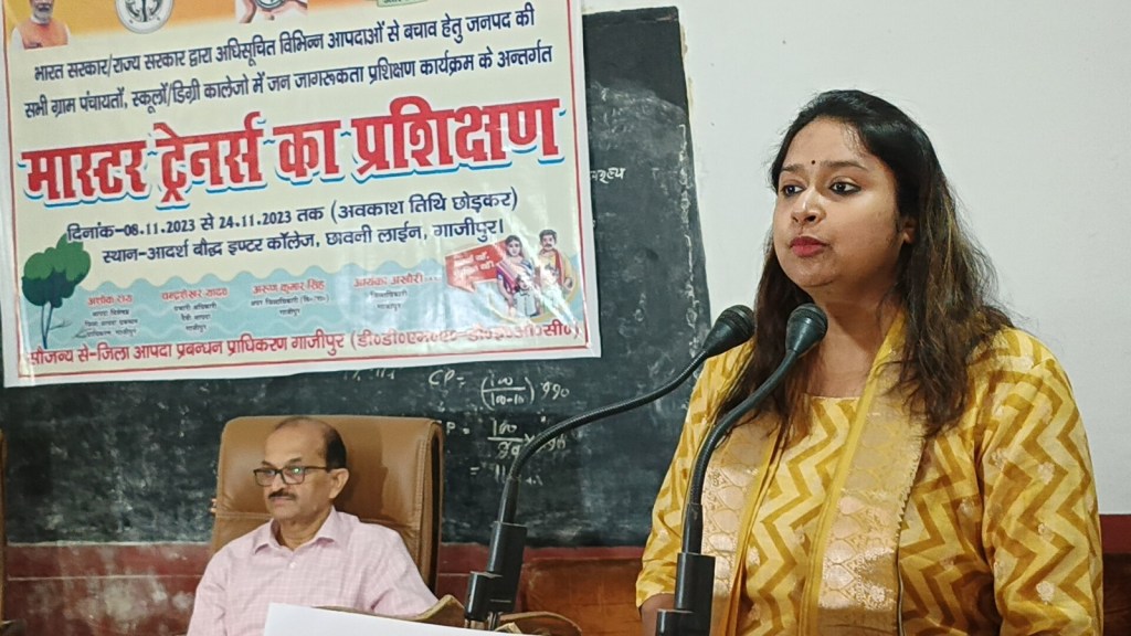 गाजीपुर। भारत सरकार/राज्य सरकार द्वारा अधिसूचित विभिन्न आपदाओं से बचाव हेतु जनपद की सभी ग्राम पंचायतो, विद्यालयों/स्कूलो, डिग्री कालेजो में जन जागरूकता प्रशिक्षण कार्यक्रम के अन्तर्गत मास्टर ट्रेनर्स का प्रशिक्षण कार्यक्रम जिलाधिकारी आर्यका अखौरी द्वारा बुधवार को शुभारम्भ किया गया। यह प्रशिक्षण आदर्श बौद्ध इण्टर कालेज छावनीलाईन में आयोजित किया जा रहा है। यह कार्यक्रम 8 नवम्बर, 2023 से 24 नवम्बर, 2023 तक अवकाश तिथि छोड़कर संचालित रहेगा। कार्यक्रम के प्रथम दिन को तहसील सदर, सैदपुर, जमानियॉ, जखनियॉ, सेवराई, एवं कासिमाबाद के लेखपाल एवं राजस्व निरीक्षको द्वारा मास्टर टेनर का प्रशिक्षण प्राप्त किया गया। इस कार्यक्रम में राज्य सरकार द्वारा घोषित आपदाओं को न्यून करने तथा आपदा घटित होने के उपरान्त त्वरित सहायता दिये जाने के बारे में सभी को अवगत कराया गया। प्रशिक्षण के दौरान जूट के बैग में किट तैयार कर वितरित किया गया। कार्यक्रम का शुभारम्भ जिलाधिकारी के द्वारा दीप प्रज्ज्वलित कर किया गया। जिलाधिकारी ने विद्यालय परिवार को सहयोग के लिए धन्यवाद ज्ञापित कर कार्यक्रम आयोजित करने वाले टीम मे मुख्यतः अपर जिलाधिकारी वि0/रा0 अरूण कुमार सिंह एवं उनके नियंत्राणाधीन कार्मिकों का उत्साह वर्धन किया। अन्त में जिलाधिकारी द्वारा पूरी निष्ठा से आपदा राहत कार्य करने हेतु प्रेरणा दिया। कार्यक्रम का संचालन अशोक राय आपदा विशेषद ने किया।