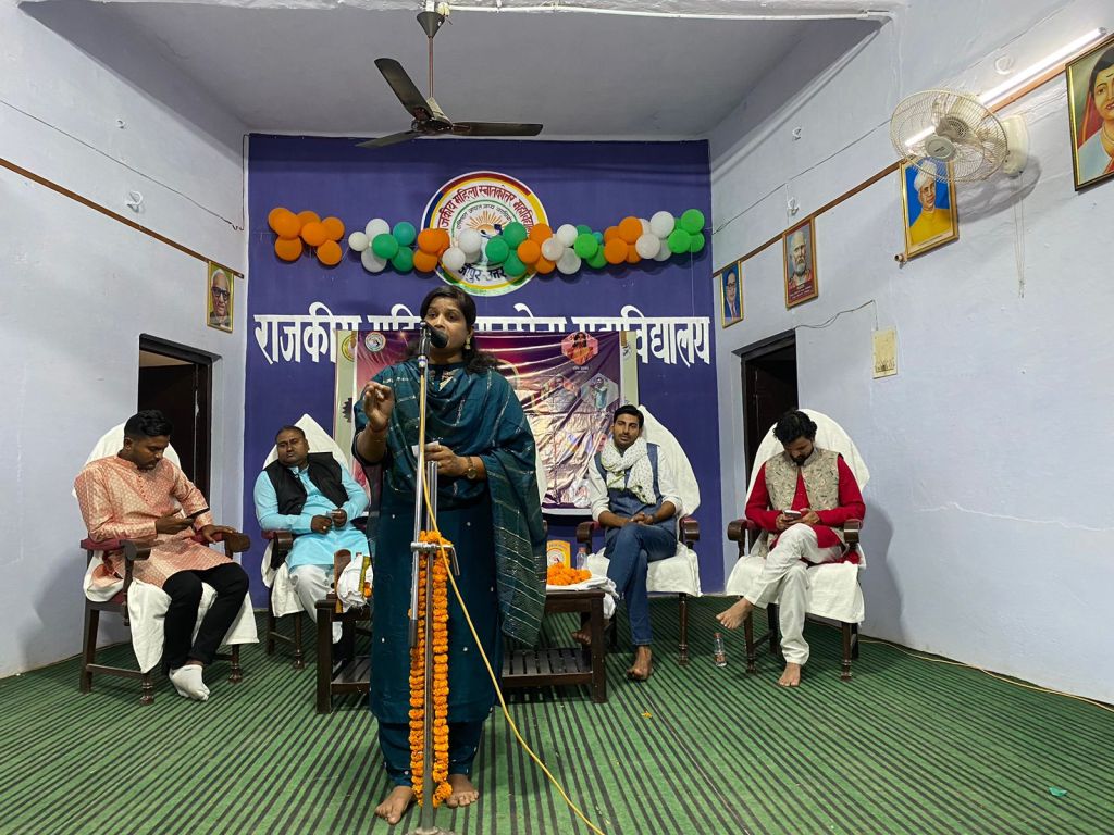 गाजीपुर। दीपोत्सव के अवसर पर राजकीय महिला स्नातकोत्तर महाविद्यालय में हिन्दी विभाग द्वारा शब्दोत्सव मानने के लिए कवि सम्मेलन गुरूवार को आयोजित किया गया। इस कवि सम्मेलन में राष्ट्रीय स्तर पर ख्याति अर्जित करने वाली कवयित्री रश्मि शाक्य, कवि आशीष द्विवेदी, व्यंग्यकार निर्भय निनाद, कवि दिलीप दीपक और वाह भाई वाह से ख्यातिप्राप्त कवि रामाकांत राही ने भाग लिया। यह कवि सम्मेलन दो चरणों में हुआ। पहले चरण में महाविद्यालय की छात्राओं ने स्वरचित अपनी कविताओं का पाठ किया, जिसमें किरन यादव, करिश्मा पाण्डेय, साधना यादव एवं ज्योति शर्मा ने अपनी भाव प्रधान कविताओं से खूब वाह वाही लूटी। दूसरे चरण में आमंत्रित कवियों ने अपनी कविताओं का पाठ किया।