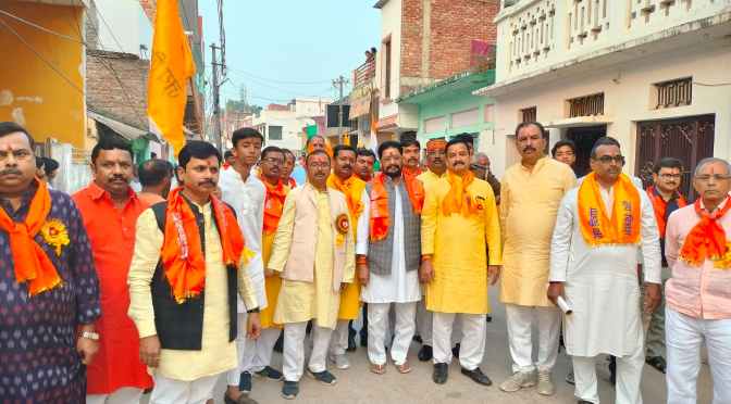 शोभायात्रा आरंभ होने के पूर्व इस शोभायात्रा में शामिल बतौर अतिथि सदर विधायक जै किशन साहू ,जंगीपुर विधायक डॉ वीरेंद्र यादव, भाजपा के जिलाध्यक्ष सुनील सिंह,पूर्व चेयरमैन विनोद अग्रवाल, कांग्रेस के जिलाध्यक्ष सुनील राम,पूर्व विधायक अमिताभ अनिल दुबे एवं समाजवादी पार्टी के राष्ट्रीय कार्यकारिणी के सदस्य राजेश कुशवाहा को जिलाध्यक्ष अरुण कुमार श्रीवास्तव एवं जिला महामंत्री अरूण सहाय द्वारा स्मृति चिन्ह ,अंगम् वस्त्रम् एवं कलम देकर सम्मानित किया गया।