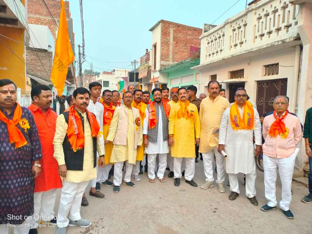इस शोभायात्रा में समाज के नौजवान जय चित्रांश का झंडा