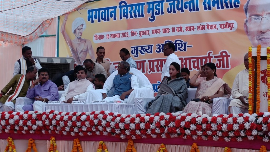 गाजीपुर।स्वतंत्रता संग्राम सेनानी और आदिवासी लोकनायक बिरसा मुण्डा की जयंती बुधवार को ‘जनजातीय गौरव दिवस‘ के रूप में मनाई गयी। मुख्य अतिथि लक्ष्मण आचार्य महामहिम राज्यपाल सिक्किम ने लंका मैदान में दीप प्रज्ज्वलित कर कार्यक्रम का शुभारंभ किया। मंच पर आसीन मुख्य अतिथि एवं अन्य अतिथियो का स्वागत स्मृति चिन्ह एवं पुष्पगुच्छ देकर किया गया। स्वागत की इस घड़ी में स्कूली छात्राओ द्वारा स्वागत गीत एवं कलाकारो द्वारा करमा नृत्य की प्रस्तुति मनमोहक रही। इस दौरान उन्होने जनपद के ऐसे अनुसूचित जनजाति के युवाओ को मेडल एवं अंगवत्रम देकर सम्मानित किया। जिन्होने शिक्षा, खेल एवं अन्य क्षेत्रो स्थान प्राप्त कर अपने जनपद का नाम रोशन किया।