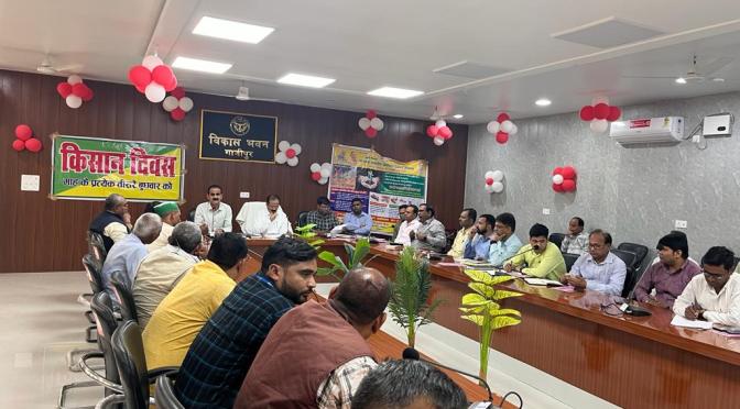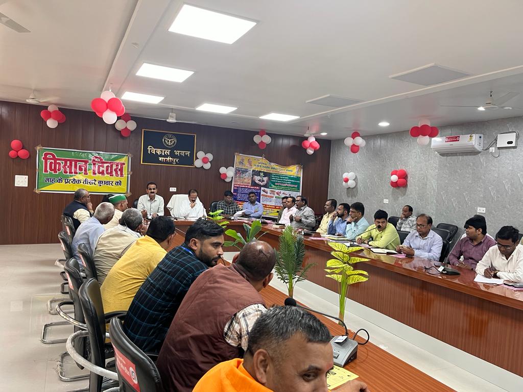 गाजीपुर। मुख्य विकास अधिकारी संतोष कुमार वैश्य की अध्यक्षता में किसान दिवस की बैठक शुक्रवार को विकास भवन के सभागार में आयोजित हुआ। जिसमें विभिन्न किसानों द्वारा कृषि संबंधित जैसे सिंचाई, बिजली, पशुपालन, बीज व्यवस्था, उर्वरक व्यवस्था, उद्यान व मत्स्य से संबंधित अपनी शिकायतों से अवगत कराया गया तथा मुख्य विकास अधिकारी द्वारा शिकायतों के त्वरित निस्तारण के लिए संबंधित विभागीय अधिकारियों को निर्देशित किया गया। किसान दिवस में विभिन्न विभागों के अधिकारी उप कृषि निदेशक, जिला कृषि अधिकारी, भूमि संरक्षण अधिकारी, जिला उद्यान अधिकारी, अधिशासी अभियंता विद्युत, सिंचाई अधिशासी अभियंता नलकूप आदि लोगों उपस्थित रहे। गोष्टी में उन्होने बारी-बारी से पिछली बैठक के दौरान प्राप्त शिकायतो के निस्तारण के सम्बन्ध मे शिकायतकर्ता से जानकारी ली। विद्युत बिल से सम्बन्धित शिकायत पर मुख्य विकास अधिकारी तत्काल ठीक करने का निर्देश दिया। इस अवसर पर मुख्य विकास अधिकारी संतोष कुमार वैश्य, उप निदेशक कृषि, जिला कृषि अधिकारी, जिला उद्यान अधिकारी तथा सिचाई विभाग/विद्युत विभाग के अभियन्ता,नहर एवं अन्य सम्बन्धित विभाग के अधिकारी सहित सम्मानित किसान बन्धु उपस्थित रहे।