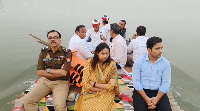 इस अवसर पर मुख्य विकास अधिकारी, उपजिलाधिकारी सैदपुर, क्षेत्राधिकारी सैदपुर, एवं समस्त जनपदस्तरीय अधिकारी उपस्थित रहे। उसके उपरान्त जिलाधिकारी एवं पुलिस अधीक्षक ने नाव द्वारा शहर के पवहारी बाबा आश्रम घाट, पत्थर घाट, छोटा महादेवा, बड़ा महादेव घाट, सिकन्दपुर घाटर, साईबाबा मन्दिर घाट, कलेक्ट्रर घाट, ददरी घाट एवं चीतनाथ घाट का निरीक्षण किया। निरीक्षण के दौरान उन्होने गाजीपुर के जनपदवासियों से अपील किया है कि जिस स्थान पर पत्थर घाट, छोटा महादेवा, बड़ा महादेव घाट प्रतिबन्धित किया गया है उस स्थान पर कदापि अपने डाला को न ले जाय, गहरे पानी में न जाय, गंगा के किनारे के घाटो पर अपना-अपना छठ पूजा अर्चन धूम-धाम से मनायी जाय। भीड़ भाड़ की संख्या कम से कम हो जिससे आप व आपका परिवार सुरक्षित रहें। इस अवसर पर उपजिलाधिकारी सदर, ई0ओ0 नगर पालिका गाजीपुर, सी0ओ0सिटी, तहसीलदार सदर एवं अन्य अधिकारी उपस्थित रहें।