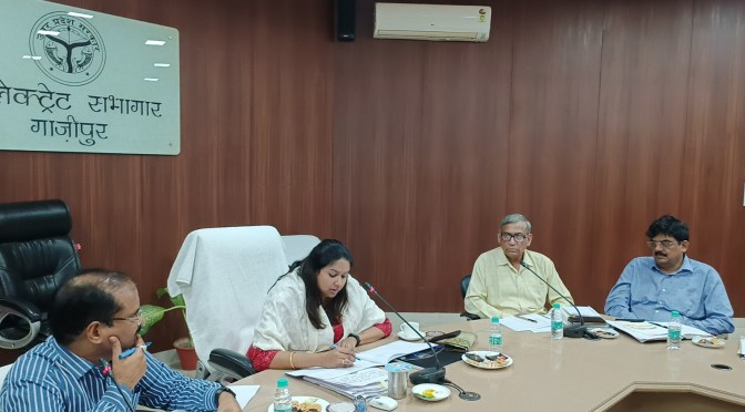 गाजीपुर। जिलाधिकारी आर्यका अखौरी की अध्यक्षता में उ0प्र0 शासन द्वारा निर्धारित शासन के महत्वपूर्ण (37 बिन्दु), मुख्यमंत्री की सर्वोच्च प्राथमिकता के विकास कार्यों की समीक्षा बैठक बुधवार को रायफल क्लब सभागार मे सम्पन्न हुई। बैठक सीएम डैशबोर्ड से ली गयी। बैठक के दौरान जिलाधिकारी ने जिस-जिस विभागो की विभागीय योजनाए, आख्या, उपलब्धी सीएम डैश बोर्ड पोर्टल पर फीड नही है उसे तत्काल फीड कराने का निर्देश दिया, जिससे जनपद की रैकिग खराब न हो। बैठक में उन्होने समस्त संबंधित विभागों से जुड़ी योजनाओं की माह प्रगति के बारे में समीक्षा की। समीक्षा के दौरान उन्होने संबंधित अधिकारी को निर्धारित समय सीमा में विभागीय विकास परक योजनाओं एवं निर्माणाधीन परियोजनाओं को पूरा करने के सख्त निर्देश दिये। उन्होंने कहा कि जन कल्याणकारी योजनाओं को प्राथमिकता के आधार पर लागू कर पात्र आम जन मानस को त्वरित गति से लाभ पहुचाया जाये। किसी भी स्तर पर लापरवाही न बरती जाये। कोई भी पात्र व्यक्ति शासन की लाभ परक योजनाओं से वंचित न रहने पाए एव सहभागिता योजना में पात्र लोगो को जागरूक करने का निर्देश दिया।