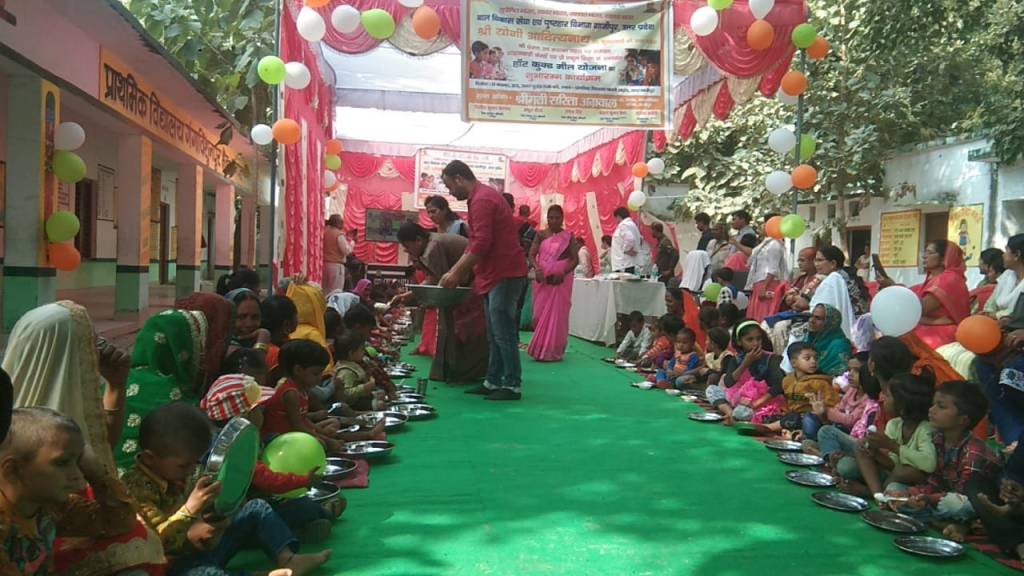 नगर पालिका अध्यक्ष ने बच्चों को भोजन परोस कर शुरू किया हॉट कुक मील योजना