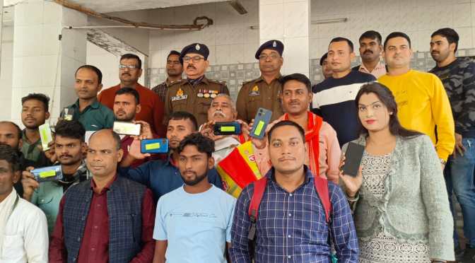 गाजीपुर। सर्विलांस सेल टीम द्वारा जनपद में खोये हुए कुल 62 अदद स्मार्ट फोन बरामद कर आवेदकों को सुपुर्द किया गया। बरामद मोबाइल की अनुमानित कीमत 12 लाख रुपए है। पुलिस अधीक्षक कार्यालय में शुक्रवार को एसपी ओमवीर सिंह ने बरामद दर्जनों मोबाइल फोन को आवेदकों को दिया।