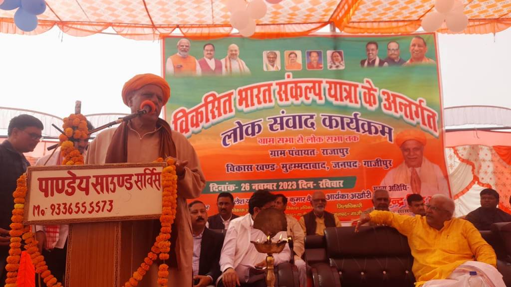 गाजीपुर। विकसित भारत संकल्प यात्रा के अन्तर्गत लोक संवाद कार्यक्रम विकास खण्ड मोहम्मदाबाद के ग्राम पंचायत राजापुर में सांसद बलिया वीरेन्द्र सिंह मस्त ने दीप प्रज्ज्वलित कर रविवार को शुभारम्भ किया। कार्यक्रम का शुभारम्भ विधि विधान व मंत्रोच्चारण के साथ किया गया। सरस्वती शिशु मंन्दिर राजापुर के छात्राओं द्वारा मुख्य अतिथि के स्वागत में स्वागतगीत की प्रस्तुति दी गयी जो सराहनीय रहा। इस दौरान मुख्य अतिथि ने राजापुर में सांसद निधि से एक खेल मैदान की घोषणा की। ‘‘विकसित भारत संकल्प यात्रा’’ आधारित विशेष वैन के माध्यम से प्रधानमंत्री के व्यक्तव्यो को सुना व देखा गयां। कार्यक्रम के दौरान सरकार की योजनाओं से लाभान्वित व्यक्तियों ने प्रधानमंत्री एवं मुख्य मंत्री को धन्यवाद ज्ञापित किया। विकसित भारत संकल्प यात्रा कार्यक्रम मे मुख्य अतिथि सांसद बलिया वीरेन्द्र सिंह मस्त ने अपना सम्बोधन व्यक्त करतेे हुए कहा कि सरकार द्वारा जो भी योजनाएॅ संचालित होती है उसका लाभार्थी प्रत्येक पात्र व्यक्ति बने। उन्होने कहा कि पहली बार इस देश के प्रधानमंत्री पर जनता का भरोसा पैदा हुआ है कि जो कहता है, वो दिखता है। जो लोकतंत्र के शक्ति शाली होने का सबसे बड़ा सबूत है। उन्होने कहा कि यह करईल क्षेत्र की धरती जो दुनिया की सबसे उपजाऊ किस्म की धरती है जो पहले मगही नदी के जल जमान से ग्रस्त थी, यहां खेती नही हो पाती थी, मैने प्रशासनिक अधिकारियो से वार्ता की और कहा कि मगही नदी को मगही नदी के पेटा में कताई कराकर जल का प्रवाह कराने की जरूरत है और ऐसा ही हुआ। आज करईल के क्षेत्र में हरियाली देखकर गर्व से सीना चौड़ा हो जाता है। उन्होने जनपद में मोटे अनाज के उत्पादन की बात कहते हुए गाय पालन पर भी बल दिया। उन्होने कहा कि मोटे अनाज की मांग आज विदेश मे भी है क्योकि आज लोगो को ज्ञान हो गया है कि मोटे अनाज के सेवन से स्वास्थ सबल रहता है। उन्होने कहा कि मैने फैसला किया है कि गंगा नदी के किनारे 5 किमी के दायरे में प्राकृतिक खेती होगी उसके लिए 6000 हजार रूपये अनुदान सरकार से किसानो को मिलेगा। उन्होने कहा कि लोकतंत्र की ताकत को शक्तिशाली बनाने के लिए ग्राम सभा से लेकर लोकसभा तक की शक्ति, शक्तिशाली रहनी चाहिए।