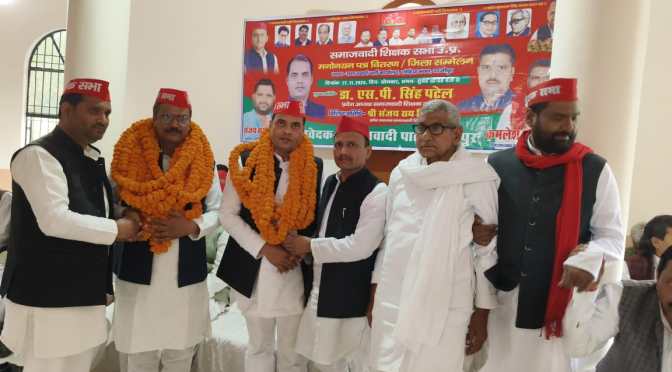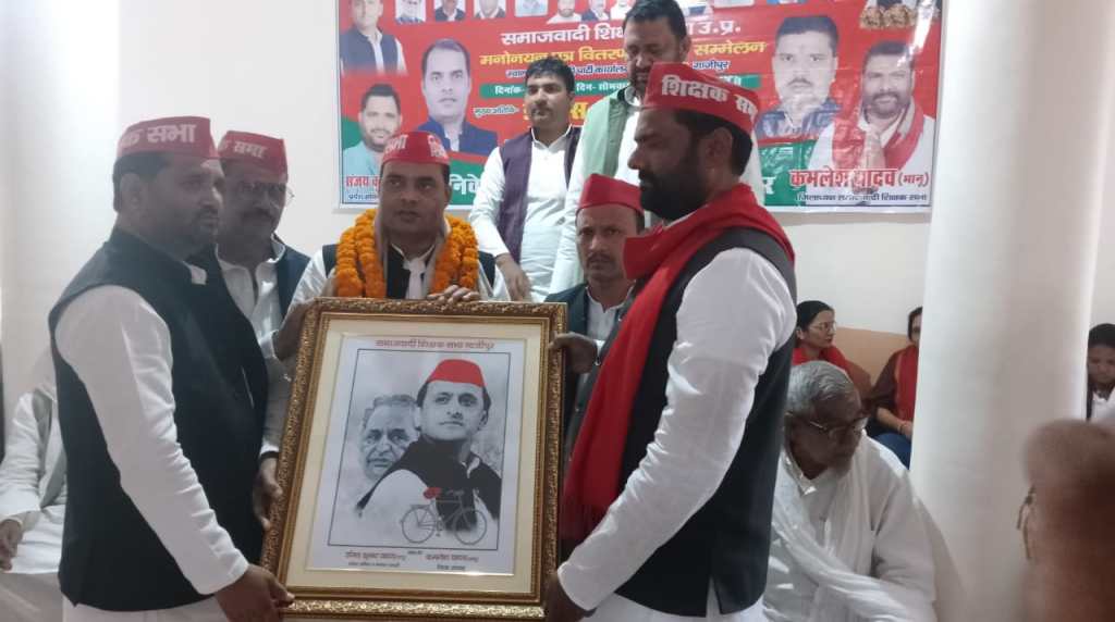 गाजीपुर। समाजवादी शिक्षक सभा के तत्वावधान में समाजवादी शिक्षक सभा के जिलाध्यक्ष कमलेश यादव उर्फ भानु की अध्यक्षता में पार्टी कार्यालय लोहिया भवन पर मनोनयन पत्र वितरण एवं सम्मान समारोह का आयोजन किया गया। मनोनयन पत्र वितरण के पूर्व समाजवादी शिक्षक सभा के जिलाध्यक्ष कमलेश यादव ने इस कार्यक्रम के मुख्य अतिथि मुख्य समाजवादी शिक्षक सभा के प्रदेश अध्यक्ष एस पी सिंह पटेल जी एव विशिष्ट अतिथि संजय राय प्रियदर्शी को माल्यार्पण कर एवं अगम् वस्त्र व स्मृति चिह्न प्रदान कर सम्मानित किया। इस अवसर पर पदाधिकारियों को मनोनयन पत्र वितरित कर मुख्य अतिथि एस पी सिंह पटेल ने उन्हें सांगठनिक कार्यों के गंभीर होने की हिदायत दिया और कहा देश गंभीर संकट के दौर से गुजर रहा है। ऐसे गंभीर परिस्थितियों में संगठन की बहुत बड़ी जिम्मेदारी है । आज देश का लोकतन्त्र और संविधान दोनों खतरे मे है। उन्होंने कहा लोकतंत्र और संविधान के सुरक्षित रहने पर ही गरीबों को न्याय और उनका हक और अधिकार मिलेगा। उन्होंने कहा इस देश के संविधान और लोकतंत्र की रक्षा के लिए हमें हर कुर्बानी देने के लिए तैयार रहना होगा। उन्होंने कहा कि आज देश में बढ़ती मंहगाई, बेरोजगारी और भ्रष्टाचार के चलते आम जन दुखी हैं, लेकिन भाजपा सरकार को देश के गरीबों के सुख दुख से कुछ भी लेना-देना नहीं है। वह केवल अपने पूंजीपति मित्रों के हित संरक्षित करने में व्यस्त हैं। इस देश के लोकतंत्र, संविधान, सामाजिक न्याय और धर्म निरपेक्ष स्वरूप की सुरक्षा के लिए इस सरकार को सत्ता से बेदखल करना जरूरी है।