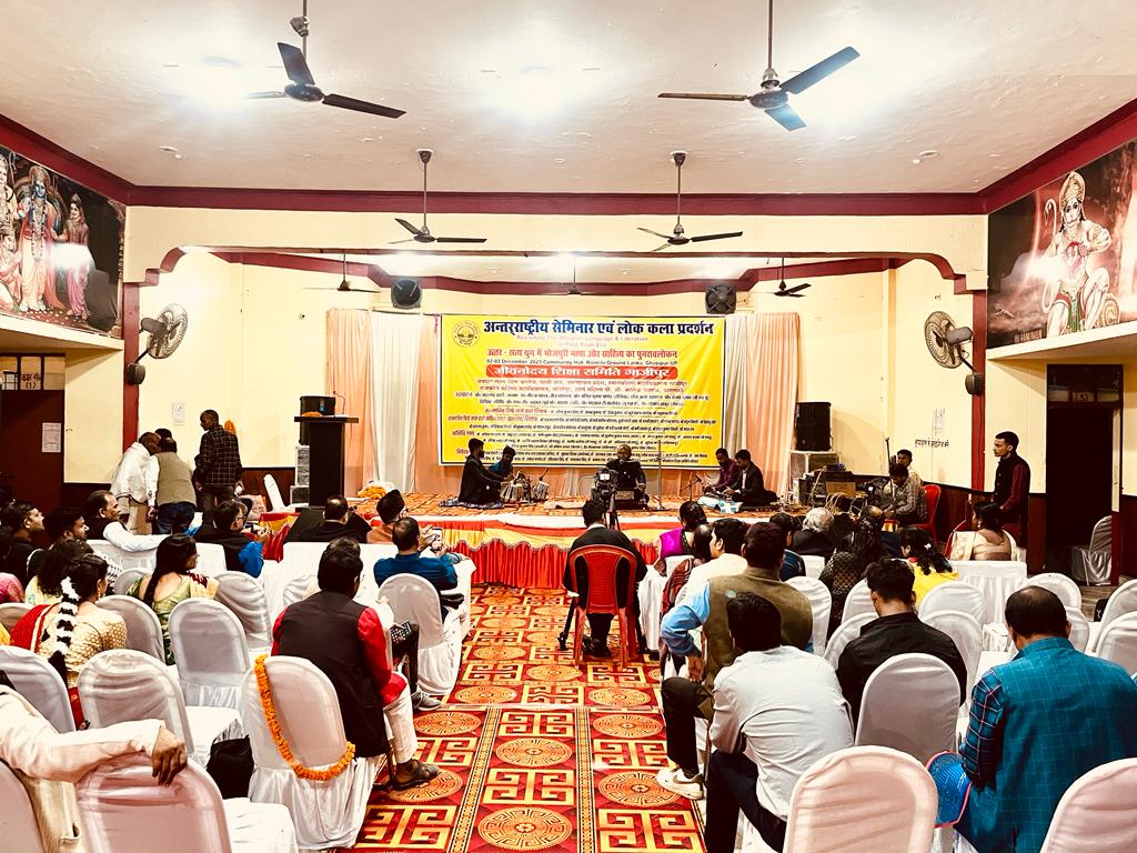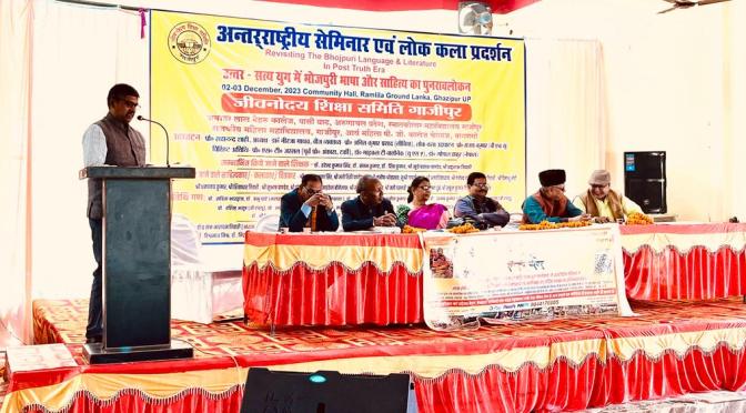 गाजीपुर। जीवनोदय शिक्षा समिति गाजीपुर, जे.एन. कॉलेज, पासीघाट, राजकीय महिला पीजी कॉलेज पीजी कॉलेज एवं आर्य महिला पी.जी. कॉलेज वाराणसी के संयुक्त तत्वाधान में आयोजित ‘उत्तर-सत्य युग में भोजपुरी भाषा और साहित्य का पुनरावलोकन’ विषय पर दो दिवसीय अंतरराष्ट्रीय सेमिनार आज दूसरे दिन रविवार को भी जारी रहा। प्रथम सत्र की अध्यक्षता डॉ श्रीकांत पांडे ने किया । आपके अनुसार भोजपुरी भाषा को समृद्धि इसके प्रयोग से मिलेगी। अन्य भाषाओं के साथ इसके प्रयोग से इसका क्षेत्र व्यापक होगा। इसमें अभी भी बड़ा साहित्य सृजन नहीं हो पाया है । नेपाल भाषा आयोग के अध्यक्ष डॉ. गोपाल ठाकुर एवं सदस्य गोपाल ठाकुर ‘अश्क’ ने भोजपुरी भाषा के संवर्धन और संरक्षण में योगदान को रेखांकित किया। अपने नेपाल में 150 पुस्तकों के सृजन और ‘नेपाल प्रज्ञा प्रतिष्ठान’ का महत्व बताया। आपके अनुसार भोजपुरी में भारत से ज्यादा कार्य नेपाल में हो रहा है तथा यह भोजपुरी नेपाल की तीसरी भाषा है। डॉ संतोष सिंह ने भोजपुरी सिनेमा के विकास के साथ भोजपुरी संस्कृति के विकास में भोजपुरी की पहली फिल्म ‘गंगा मैया तोहे पियरी चढ़ाइयबे’ तथा ‘तीसरी कसम’ की विशेष रूप से चर्चा की। इसके इसके सूत्रधार नासिर हुसैन भी गाजीपुर के ऊसिया क्षेत्र के रहने वाले थे। पटना से आई डॉ ज्योत्सना प्रसाद ने कहा कि भोजपुरी को अन्य भाषाओं के साथ जुड़े तो इसका विस्तार होगा तथा भोजपुरी को समृद्ध करने के लिए विभिन्न विषयों पर रचना की आवश्यकता भी बताया।