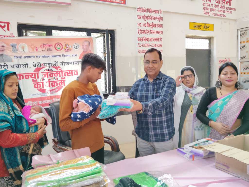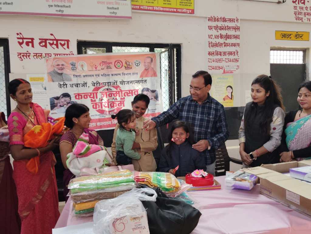 गाजीपुर। शासन के निर्देशानुसार बेटी बचाओ बेटी पढ़ाओ योजना अंतर्गत प्रत्येक माह के प्रथम एवम तृतीय सोमवार को कन्या जन्म उत्सव मनाए जाने के निर्देश प्राप्त हुए है जिसके क्रम में जिला प्रोबेशन अधिकारी संजय कुमार सोनी के निर्देशन के क्रम में सोमवार को कन्या जन्म उत्सव का आयोजन महिला चिकित्सालय मे किया गया, जिसमें 12 बच्चियों के जन्म पर केक काटकर हर्षाेल्लास के साथ कन्या जन्म उत्सव मनाया गया। कार्यक्रम में बालिकाओं की माताओं को हिमालया बेबी किट, तोलिया एवं मिष्ठान देकर सम्मानित किया गया। कार्यक्रम में महिला कल्याण विभाग द्वारा संचालित समस्त विभागीय योजनाओं के बारे में विस्तृत जानकारी दिया गया। कार्यक्रम में मुख्य चिकित्सा अधीक्षक, महिला शक्ति केंद्र से जिला समन्वयक, शिखा सिंह गौतम जिला समन्वयक, लक्ष्मी मौर्य व आशा बहने मौजूद रही।