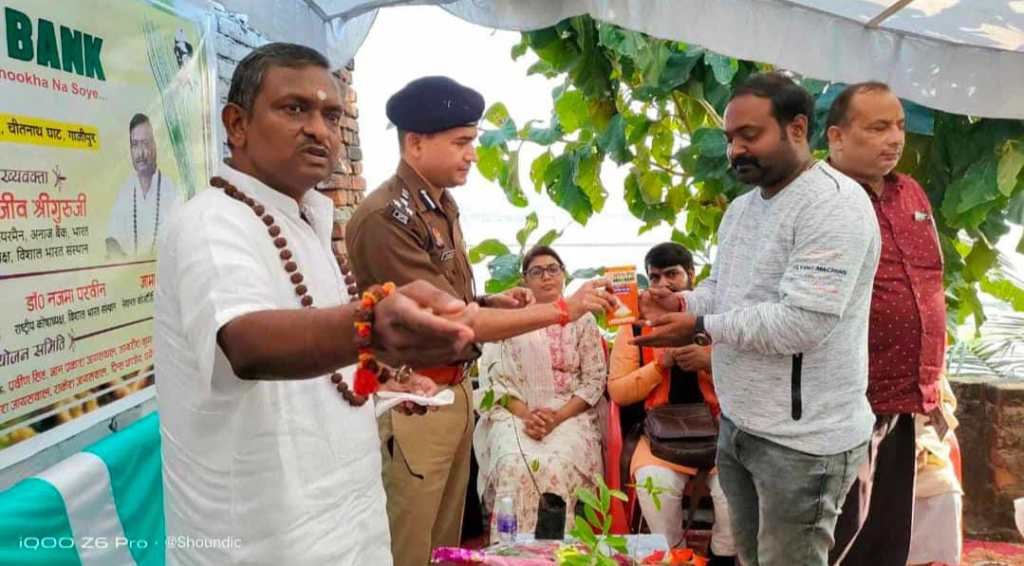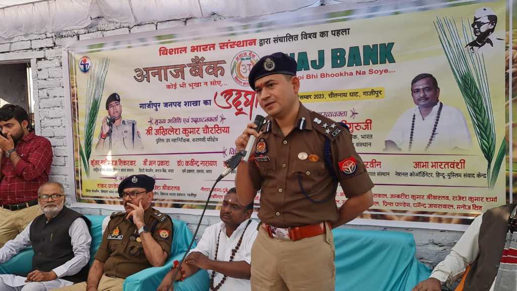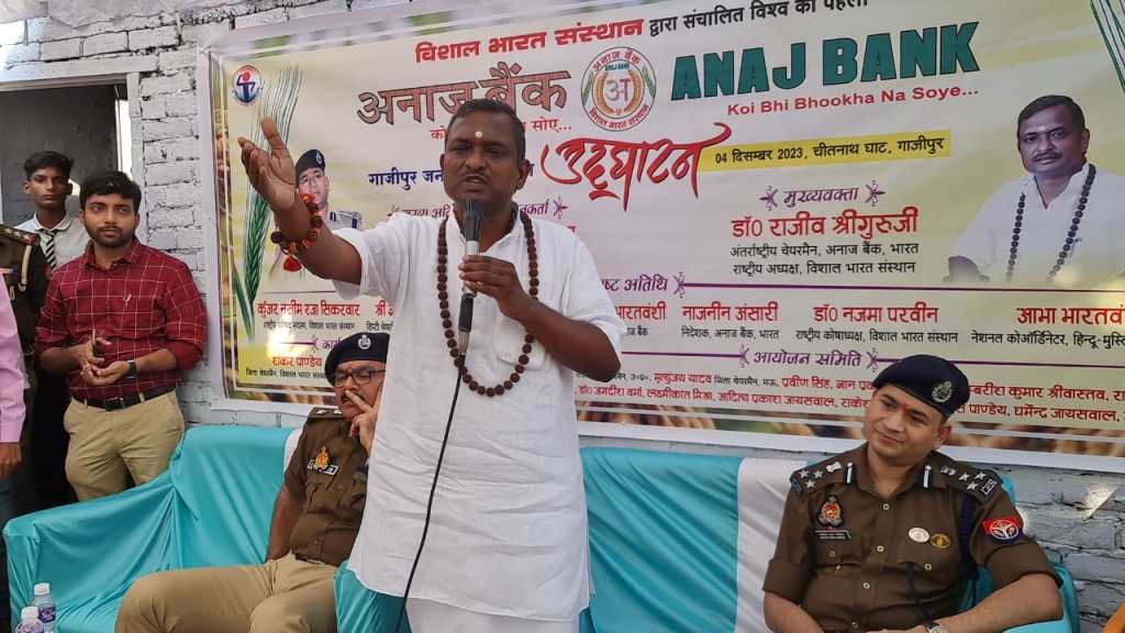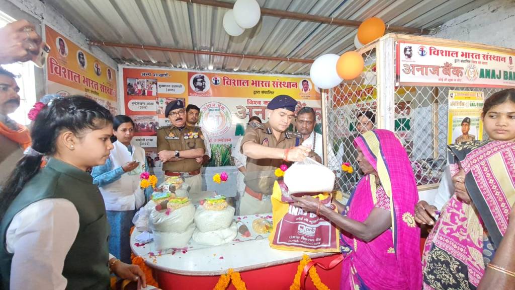 गाजीपुर। घाट पर घूमकर भीख मांगने वाली बेसहारा महिलाए एवं उनके बच्चों को भूख से पीड़ित देखकर किसका दिल नहीं पसीजेगा। भूख का न कोई विकल्प है और न भूख को स्थगित किया जा सकता है। गरीबी जनित भूख के अलावा आपदा जनित, युद्ध जनित और परिस्थिति जन्य भूख का इलाज किसी सरकार के पास नहीं है। इस समस्या के हल के लिये विश्व के पहले अनाज बैंक की स्थापना विशाल भारत संस्थान द्वारा 13 अक्टूबर 2015 को काशी में की गई थी। अनाज बैंक भूख पीड़ितों की मदद के लिए एक संगठित वैज्ञानिक मॉडल बना, जिसकी यूनाइटेड नेशन की संस्था फूड एग्रीकल्चरल ऑर्गेनाइजेशन ने भी प्रशंसा की थी। अनाज बैंक ने वाराणसी में कोरोना काल में 100 दिनों तक 1 लाख से अधिक लोगों की अनाज और भोजन देकर मदद की, जिसकी प्रसंशा प्रधानमंत्री नरेन्द्र मोदी ने पत्र लिखकर किया था। विशाल भारत संस्थान द्वारा संचालित विश्व के पहले अनाज बैंक की गाजीपुर शाखा की स्थापना चीतनाथ घाट पर की गई है। अनाज बैंक ने भूखमरी के शिकार, निराश्रित, घर विहीन, तलाकशुदा, विधवा, परित्यक्ता, कुपोषित, मुसहर, नट, धरकार, बांसफोर परिवारों की महिलाओं को पेट भरने के लिये नेताजी सुभाष चन्द्र बोस पेट भरो योजना की शुरूआत की है। भूख के सवाल पर गम्भीर विशाल भारत संस्थान ने दुनियां का पहला अनाज बैंक खोला जो गरीबी रेखा के अत्यन्त नीचे रहने वालों तक पहुंचेगा और समाज के सहयोग पेट भरने का काम करेगा।