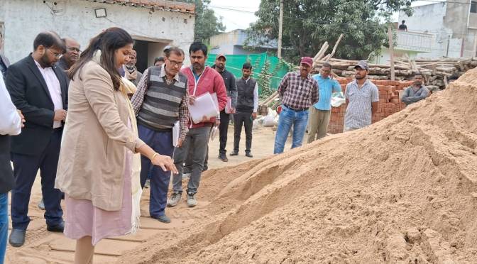 जिस पर कार्यदायी संस्था के सहायक अभियंता को निर्देश दिया गया कि डी.पी.आर. में वर्णित व्यवस्था के अनुसार ठेकेदार मेसर्स पहलवान कान्स्ट्रक्शन, लखनऊ के विरूद्ध अर्थ दण्ड लगाते हुए वसूली करना सुनिश्चित करें। अधिशासी अभियंता, लोक निर्माण विभाग, गाजीपुर को निर्देशित किया गया कि कार्य स्थल पर प्रयुक्त हो रही सामग्री तथा-ईंट, सीमेन्ट, बालू का नमूना एकत्र कर अपनी प्रयोगशाला में जॉच कराकर अवगत करायें। प्रेक्षा करने पर अवर अभियंता द्वारा अवगत कराया गया कि सामाग्री के थर्ड पार्टी वैल्यूएशन हेतु नमूना काशी हिन्दू विश्वविद्यालय, वाराणसी को भेजा गया है, जिसकी रिपोर्ट 15 दिनों में प्राप्त होगी। परियोजना प्रारम्भ करने की तिथि 1 मार्च 2023 है और कार्य स्थल पर लगभग 27 प्रतिशत कार्य हो जाने के बाद भी सामाग्री की थर्ड पार्टी वैल्यूएशन हेतु नमूना इतना विलम्ब से भेजा जाना कार्यदायी संस्था के गुणवत्तापूर्ण कार्य कराने के प्रति उदासीनता का परिचायक है। जिलाधिकारी ने निर्देश दिया कि सहायक अभियंता एवं अवर अभियंता प्रतिदिन कार्य स्थल पर उपस्थित रहते हुए अपनी तकनीकि देख-रेख में डी पी आर में वर्णित व्यवस्था अनुसार गुणवत्तापूर्ण कार्य कराना सुनिश्चित करेगे। निरीक्षण के समय जिला अल्पसंख्यक कल्याण अधिकारी, जिला अर्थ एवं संख्याधिकारी, अधिशासी अभियंता, निर्माण खण्ड-3, लोक निर्माण विभाग, कार्यदायी संस्था यू.पी. सिडको, गाजीपुर के सहायक अभियंता, पी.पी. बन्दा एवं अवर अभियंता और रोहित मौर्य उपस्थित थे।