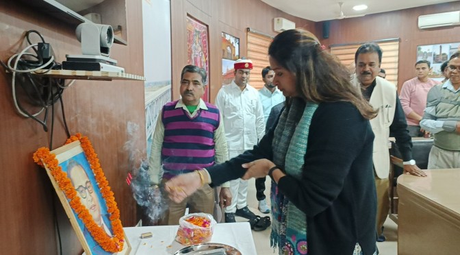 गाजीपुर। भारत रत्न बाबा साहब डा0 भीमराव अम्बेडकर के 67वें महापरिनिर्वाण दिवस के अवसर पर उन्हें श्रद्धांजलि दिये जाने हेतु कलेक्ट्रेट सभागार में जिलाधिकारी आर्यका अखौरी की अध्यक्षता में बुधवार को पुष्पांजलि सभा का आयोजन किया गया। जिलाधिकारी आर्यका अखौरी, अपर जिलाधिकारी वि0/रा0 अरूण कुमार सिह, मुख्य राजस्व अधिकारी व कलेक्ट्रेट परिवार के सभी अधिकारियों/कर्मचारियों ने भारत रत्न बाबा साहब डा0 भीमराव अम्बेडकर के छवि चित्र पर पुष्पांजलि तथा फूल माला चढाकर नमन किया। जिलाधिकारी ने उनके जीवन पर प्रकाश डालते हुये उनके जीवन संघर्षों को याद किया तथा उनके शिक्षा, सामाजिक, धार्मिक, आर्थिक, न्यायायिक योगदान पर चर्चा की। उन्होंने कहा कि भारत रत्न बाबा साहब डा0 भीमराव अम्बेडकर का 67वां परिनिर्वाण दिवस है। बाबा साहेब के संघर्ष ने लाखों लोगों में आशा का संचार किया और उनके प्रयासों ने भारत को ऐसा व्यापक संविधान प्रदान किया जिसे कभी नहीं भुलाया जा सकता।