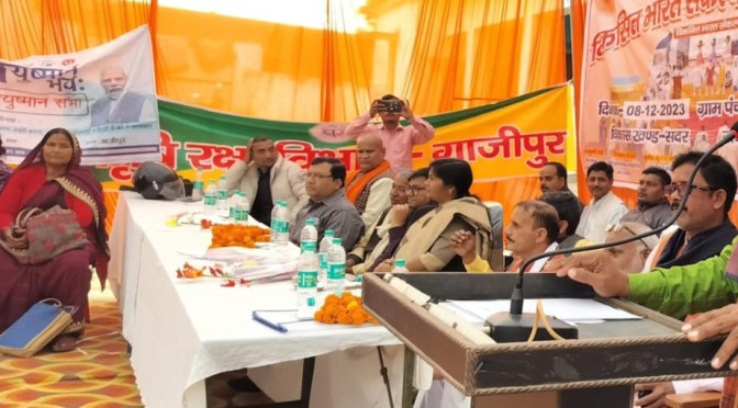 गाजीपुर। विकसित भारत संकल्प यात्रा कार्यक्रम के अंतर्गत शुक्रवार को कस्तूरबा गांधी आवासीय विद्यालय, छावनी लाइन के प्रांगण में सरकार की अनेक योजनाओं में उज्वला गैस कनेक्शन, हर घर जल योजना, आयुष्मान भारत, जन धन, प्रधानमंत्री आवास योजना आदि के बारे में लोगों को विस्तार से बताकर जागरूक किया गया। इस कार्यक्रम की मुख्य अतिथि डॉक्टर संगीता बलवंत पूर्व राज्य मंत्री ने सरकार की अनेक योजनाओं को बताया इसके साथ ही उन्होंने कहा कि हम सभी को अपने देश के नागरिकों का सम्मान करना चाहिए। जिला मीडिया प्रभारी शशिकान्त शर्मा ने कहा कि देश और व्यक्ति के लिए जो कुछ असंभव लगता था उस असम्भव को प्रधानमंत्री नरेन्द्र मोदी ने सम्भव बनाया है। मनोज बिन्द अध्यक्ष पिछड़ा वर्ग मोर्चा ने बताया की सरकार हर घर जल योजना को लाकर सभी