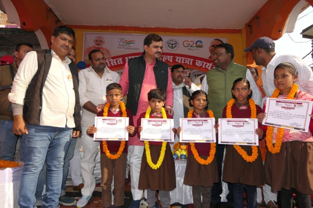 गाजीपुर। विकसित भारत संकल्प यात्रा के तहत ग्राम हंसराजपुर के पंचायत भवन मे शनिवार को लोक संवाद कार्यक्रम का आयोजन हुआ। इस कार्यक्रम का बतौर मुख्य अतिथि भाजपा एमएलसी विशाल सिंह चंचल ने दीप प्रज्ज्वलित कर शुभारंभ किया। इस दौरान एमएलसी विशाल सिंह चंचल ने कहाँ की प्रधानमंत्री नरेंद्र मोदी के दूरदर्शी सोच का प्रमाण है कि समाज के अंतिम व्यक्ति तक सरकार की जनकल्याणकारी योजनाएं अब गांव – गांव तक पहुंच रही है। पंडित दीनदयाल उपाध्याय जी का कहना था कि सरकार की जनकल्याणकारी योजनाएं अगर समाज के अंतिम व्यक्ति तक नहीं पहुंच रही हैं तो वह सरकार विफल है। लेकिन आज केन्द्र व राज्य सरकार की विभिन्न जनकल्याणकारी योजनाओं में आयुष्मान कार्ड, पीएम आवास, राशन कार्ड, उज्ज्वला योजना, विश्वकर्मा योजना आदि के तहत पात्र होने पर पंजीकरण कराकर हमारी वर्तमान की डबल इंजन की सरकार लाभ दिला रहे हैं।