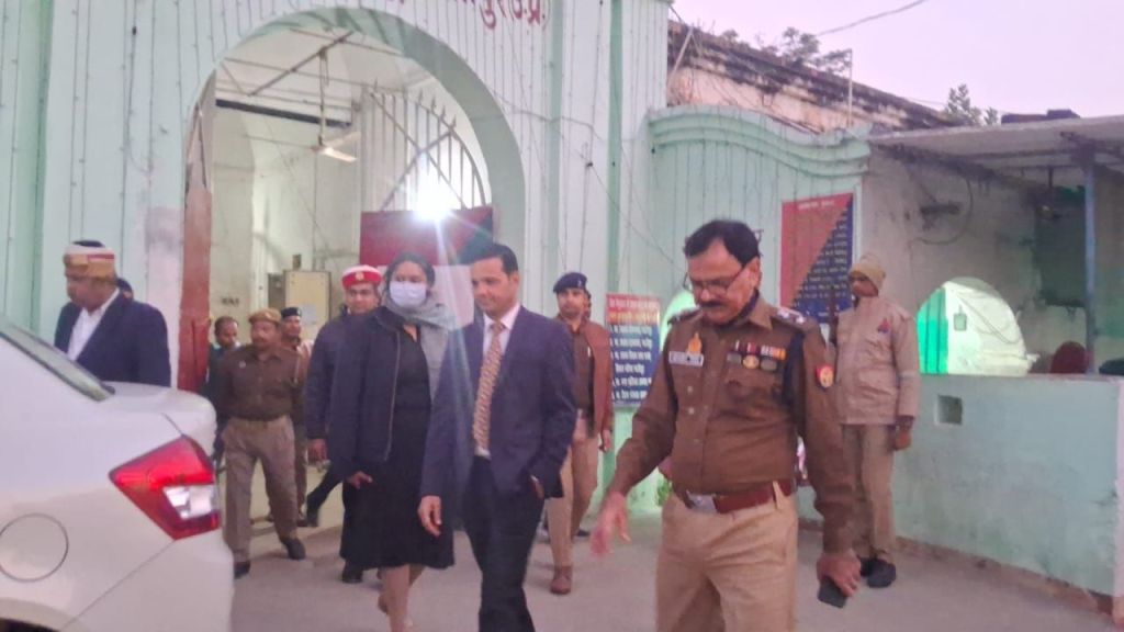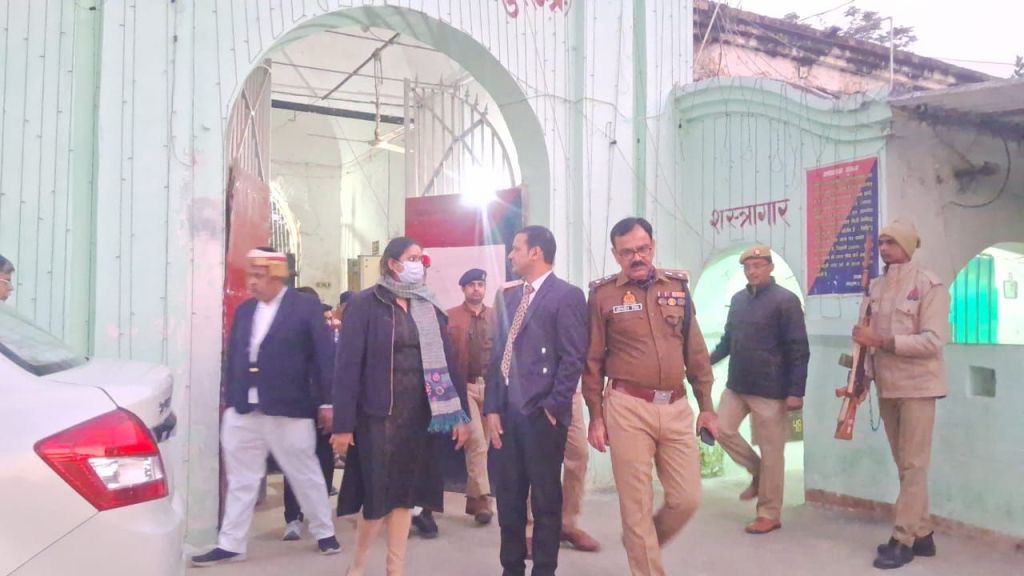 गाजीपुर। जिला जज संजय कुमार, जिलाधिकारी अर्यका अखौरी एवं पुलिस अधीक्षक ओमवीर सिंह द्वारा संयुक्त रुप से सोमवार की शाम जिला जेल का स्थलीय निरीक्षण किया गया। निरीक्षण के दौरान जिलाधिकारी एंव पुलिस अधीक्षक ने जिला कारागार मे कारागार चिकित्सालय, महिला एंव पुरूष बैरक, रसोई घर का निरीक्षण किया तथा कारागार में लगाये गए सी सी टी वी की संचालन व्यवस्था की जॉच की। जिलाधिकारी ने कारागार चिकित्सालय मे भर्ती कैदियों से बीमारियो के सम्बन्ध मे पूछा तथा उनके खान-पान एवं साफ-सफाई की जानकारी ली। जिला कारागार के हवालात कार्यालय के स्टाक रजिस्टर की जांच की गयी, इसके पश्चात बारी-बारी से सभी बैरको का निरीक्षण किया गयां। कारागार मे रसोई घर के निरीक्षण मे प्रत्येक दिनं बनने वाले भोजन के मीनू की जानकारी ली। पुलिस अधीक्षक ने जेल अधीक्षक को निर्देश दिया कि जेल के अन्दर किसी भी दशा मे मोबाइल का प्रवेश न होने पाये। इस हेतु रोस्टर बनाकर चेंकिग अभियान चलाकर चेक किया जाये। इसके अतिरिक्त महिला बन्दी गृह मे दी जा रही सुविधाओ के बावत जानकारी ली।