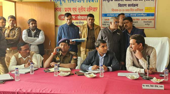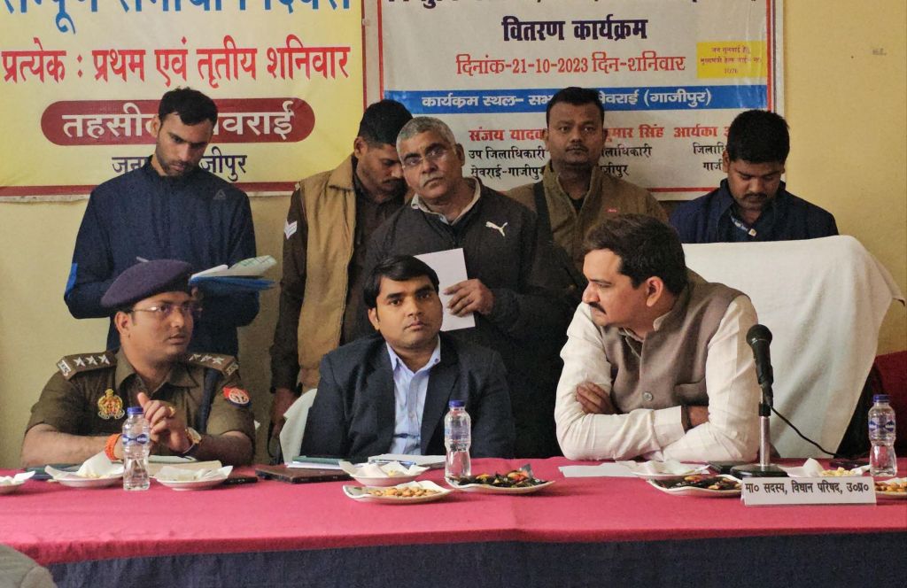 गाजीपुर। सेवराई तहसील परिसर के सभागार मे मंगलवार को एमएलसी विशाल सिंह चंचल ने विभिन्न विभागों के अधिकारियों और कर्मचारियों संग एक आवश्यक बैठक किया। बैठक उपरांत जन चौपाल में आए हुए आमजनमानस की समस्याओं को एमएलसी ने ध्यानपूर्वक सुना और समस्याओं से विदित होकर समस्याओं के निस्तारण के लिए संबंधित अधिकारियों को आदेशित किया।