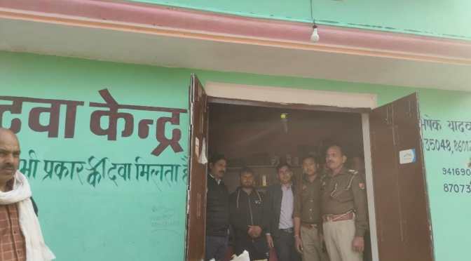 गाजीपुर। औषधि निरीक्षक ने बताया है कि जिलाधिकारी आर्यका अखौरी के आदेश एवं सहायक आयुक्त औषधि मण्डल वाराणसी के निर्देश तथा अपर जिलाधिकारी (वि0/रा0) के निर्देशन में बृजेश कुमार मौर्य औषधि निरीक्षक एवं पुलिस बल की संयुक्त टीम के द्वारा गुरूवार को ग्राम गोडउर मे अवैध रूप से संचालित किये जा रहे दवा केन्द्र गोडउर स्थित दवा /मेडिसिन विक्रय केन्द्र का निरीक्षण औचक छापा मार कर किया गया। अवैध संचालित मेडिकल स्टोर पर छापेमारी की कार्यवाही करते हुए लगभग 1 लाख 30 हजार की एलीपैथिक औषधियों को सीज किया गया एवं 2 संदिग्ध औषधियो के नमूने लिए गए। संग्रहित नमूनों की परीक्षण रिर्पोट एवं विवेचना पूर्ण होने के उपरान्त सक्षम न्यायालय में औषधि प्रसाधन एवं सामग्री अधिनियम-1940 की सुसंगत धाराओ मे परिवाद दायर किया जायेगा और आगे भी अवैध संचालित मेडिकल स्टोर पाए जाने पर कार्यवाही होती रहेगी।