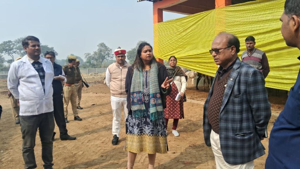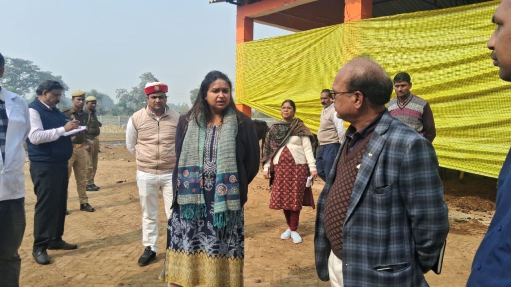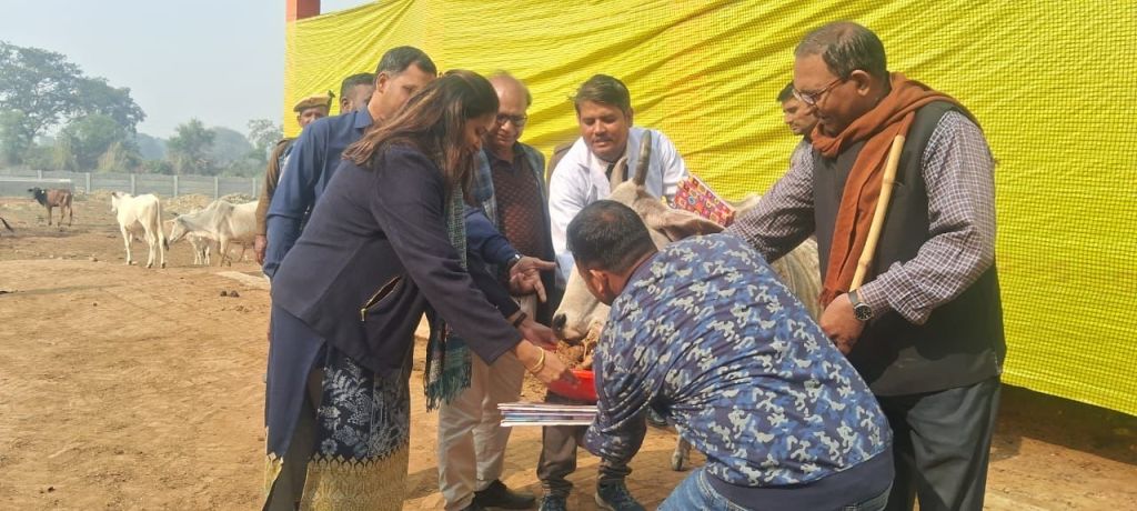 गाजीपुर। जिलाधिकारी आर्यका अखौरी ने गुरूवार को विकास खण्ड सादात अन्तर्गत वृहद्व गो-संरक्षण केन्द्र पिपनार का स्थलयी निरीक्षण किया। निरीक्षण के दौरान 380 गोवंश पाये गये। उन्होने साफ- सफाई, उपस्थित पशुओ की संख्या, चारा, पानी एवं उनके बीमारियों के सम्बन्ध मे जानकारी ली, साथ ही पशुओ को ठण्ढ से बचाने हेतु सभी आवश्यक व्यवस्था करने का निर्देश दिया और गायों को गुड़ खिलाया। मौके पर पशुओ के लिए पर्याप्त मात्रा में भूसा, चोकर एवं शुद्ध पेयजल की उपलब्धता पायी गयी। उन्होने भूमि चिन्हीत कर पशुओ के लिए हरे चारे की बुवाई किये जाने का निर्देश दिया। रात्रि में अलाव जलाने की व्यवस्था की गयी है तथा ठंड से बचाव हेतु शेड को चारो ओर तिरपाल से घेरा गया है। जिलाधिकारी ने गोवंशों का नियमित स्वास्थ्य परीक्षण कराते हुए समय समय पर संक्रामक बीमारीयों से बचाव हेतु टीकाकरण कराये जाने का निर्देश दिया। जिलाधिकारी ने पशुओ की मृत्यु हो जाने पर सही जगह पर दफनाये जाने तथा रात्रि मे गो संरक्षण केन्द्र पर एक व्यक्ति के रहने की व्यवस्था करने का निर्देश दिया। मौके पर मुख्य पशु चिकित्साधिकारी, क्षेत्रीय मुख्य चिकित्साधिकारी एवं अन्य कर्मचारी उपस्थित रहें। निरीक्षण के दौरान जिलाधिकारी ने सभी अभिलेख का अवलोकन किया जो ठीक मिले।