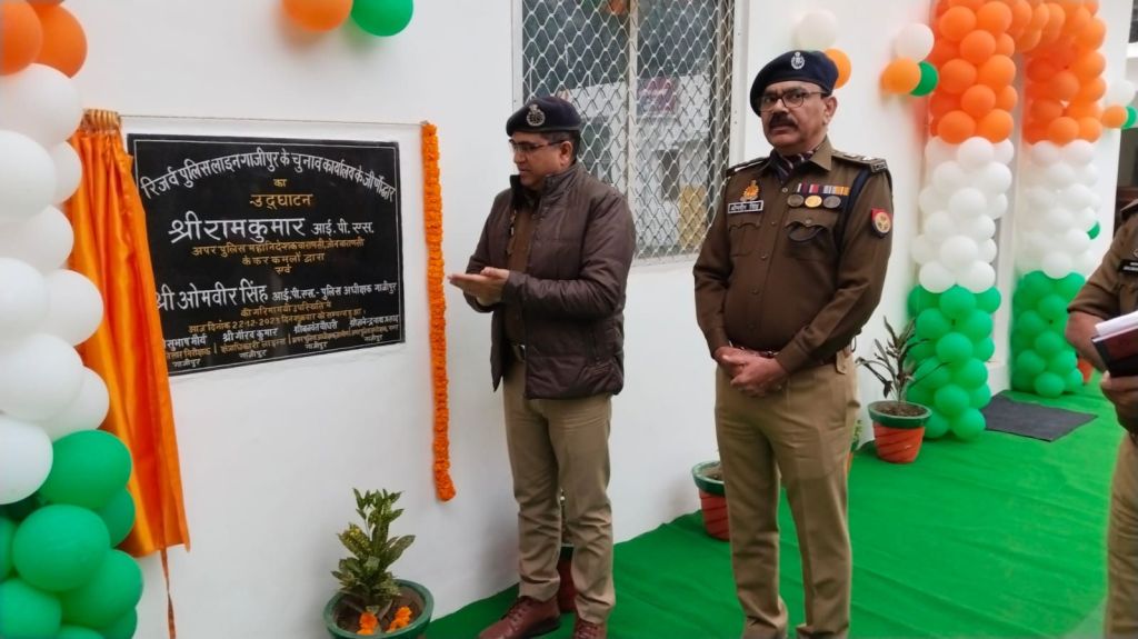 गाजीपुर। अपर पुलिस महानिदेशक वाराणसी जोन वाराणसी राम कुमार द्वारा शुक्रवार को पुलिस लाइन में जीर्णोद्धार किए गए चुनाव कार्यालय व जनपद नियंत्रण कक्ष का उद्घाटन फीता काटकर किया गया। इसके बाद उनके द्वारा पुलिस लाइन सभागार में सभी राजपत्रित अधिकारियों एवं सभी थानाध्यक्षों के साथ अपराध गोष्ठी की गई। गोष्ठी में समस्त क्षेत्राधिकारियों और थाना प्रभारीयों से उनके थाना क्षेत्र की स्थिति, अपराध की प्रवृत्ति और क्षेत्र में आने वाली चुनौतियों आदि के संबंध में जानकारी प्राप्त की।