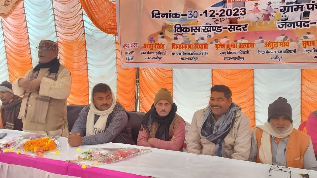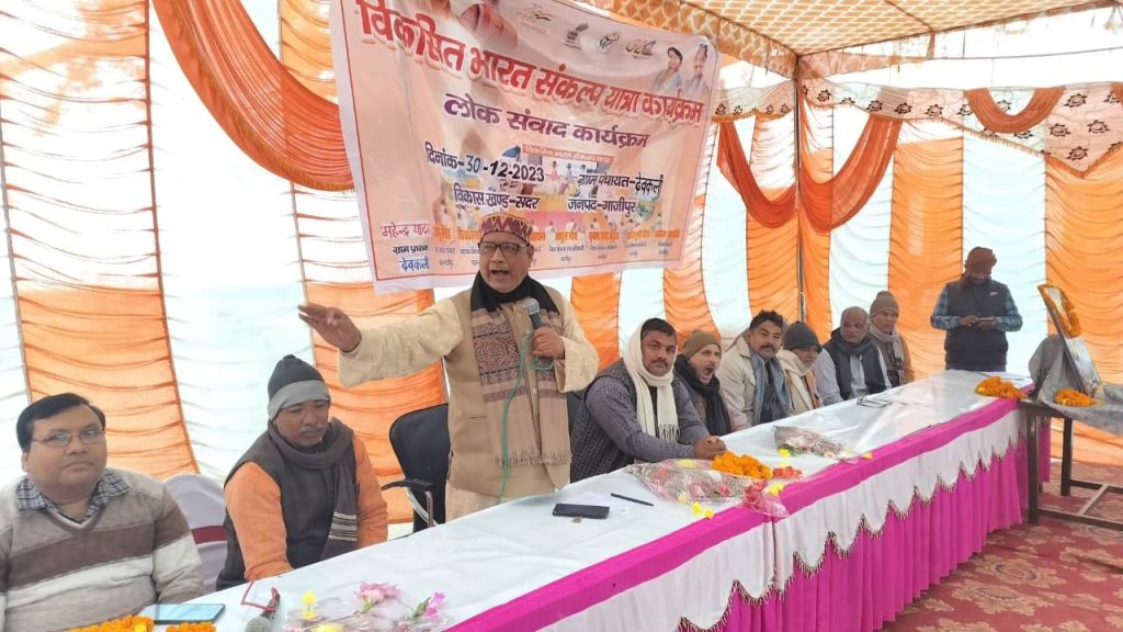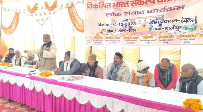 गाजीपुर। विकास खंड सदर के ग्राम पंचायत हुसेनपुर के ग्राम प्रधान वेदप्रकाश तिवारी तथा देवकली के ग्राम प्रधान महेंद्र यादव की अध्यक्षता में विकसित भारत संकल्प यात्रा का कार्यक्रम हुसेनपुर और देवकली ग्राम पंचायतों में शनिवार को आयोजित हुआ। कार्यक्रम को सम्बोधित करते हुए मुख्य अतिथि भाजपा के पूर्व जिलाध्यक्ष कृष्ण बिहारी राय ने उपस्थित लोगों से कहा कि प्रधानमंत्री नरेन्द्र मोदी द्वारा महिलाओं के सशक्तिकरण का जो काम विगत नौ वर्षों मे शुरू किया गया। उसका परिणाम अब दिखाई भी देने लगा है।नारी अब राशनकार्ड, प्रधानमंत्री विश्वकर्मा योजना, प्रधानमंत्री आवास योजना, आयुष्मान कार्ड जैसी विभिन्न कल्याणकारी योजनाओं के लाभ से अबला नही बल्कि सबल हो चुकी है। उन्होंने कहा कि प्रधानमंत्री नरेन्द्र मोदी ने देश को विकसित बनाने के लिए समाज के समृद्धी तथा देश के विकास की जो प्रक्रिया प्रारंभ किया है वह समाज के प्रत्येक व्यक्ति को समृद्ध तथा देश के सर्वांगीण विकास को मजबूत कर रहा है। कहा की समाज मे अभाव व अंतिम पायदान पर रहने वाला हर व्यक्ति गरीब, अन्नदाता किसान, मातृशक्ति महिलाओं तथा देश का भविष्य नौजवान अगर मजबूत हो जाएगा तो देश स्वावलंबी और विकसित हो जाएगा।